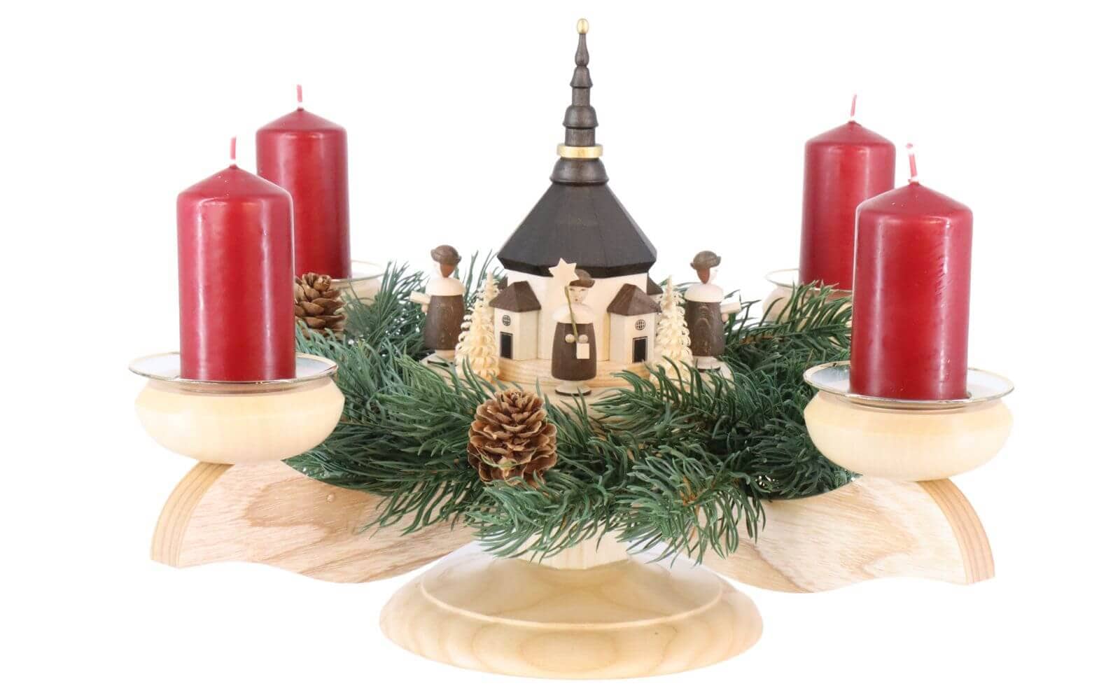 Advent candlestick with Seiffen church and fir wreath, nature by Albin Preißler