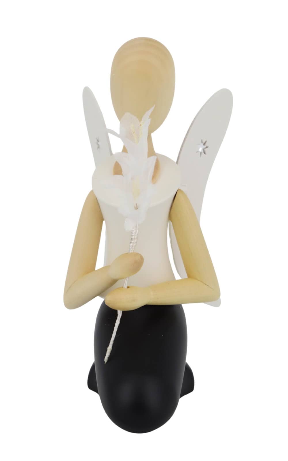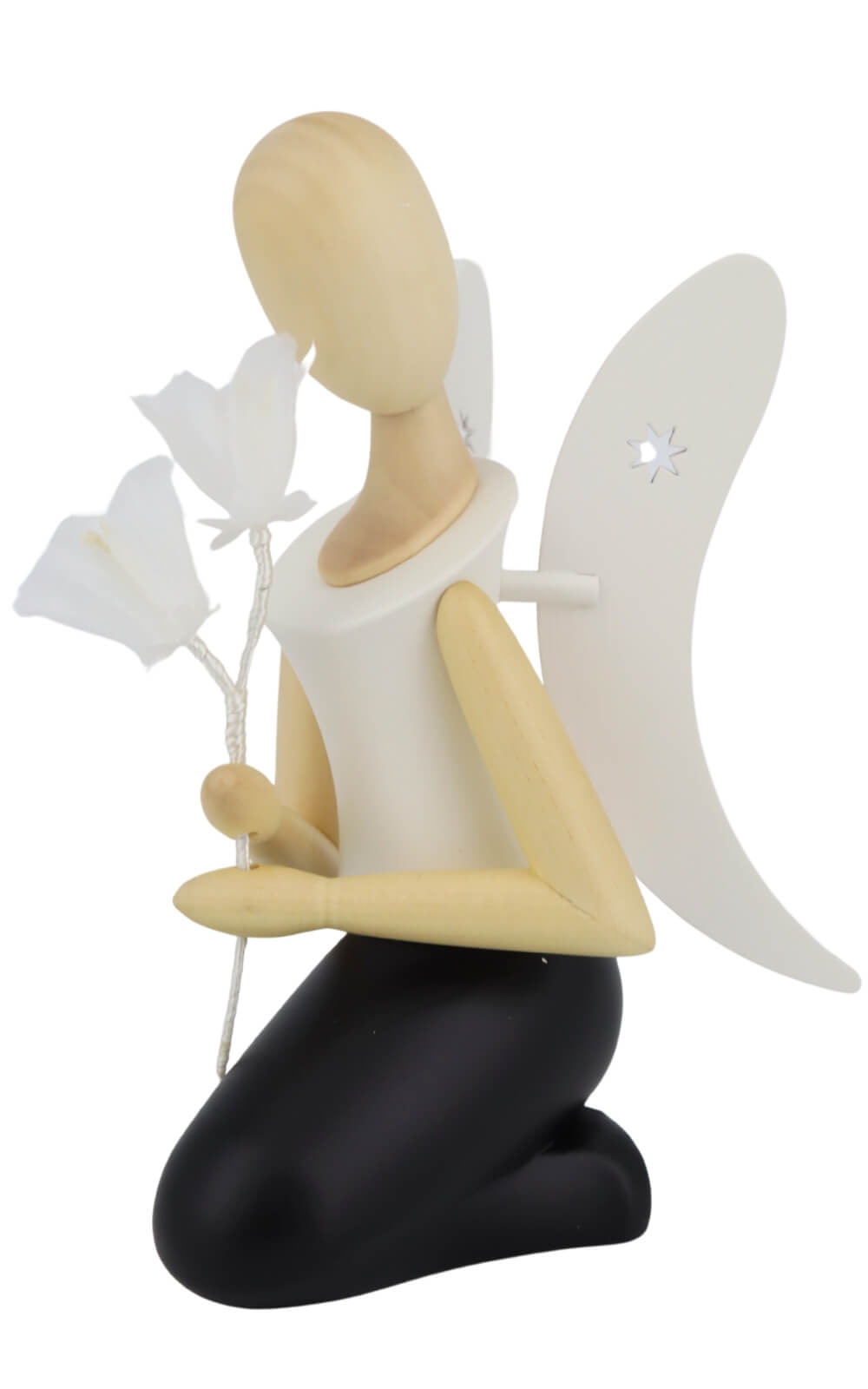 Angel - Sternkopf with white bell flower, kneeling, 13 cm by Holzkunst Gahlenz