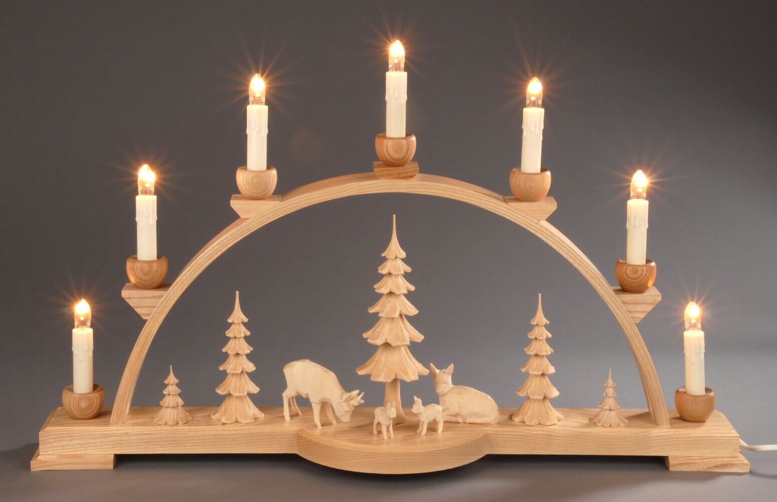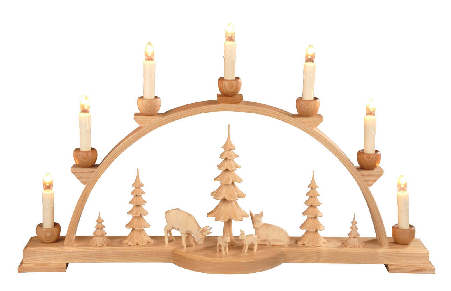 Candle arch with carved deer group, nature, 60 cm, electrically illuminated by Albin Preißler