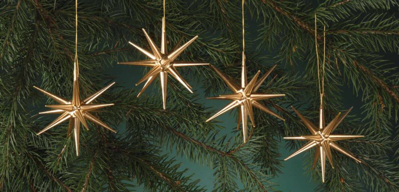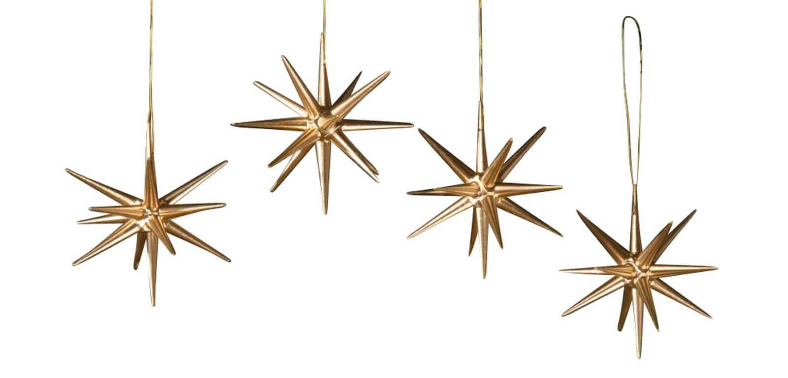 Christmas Tree Decoration & Ornament, golden Christmas stars, 4 parts