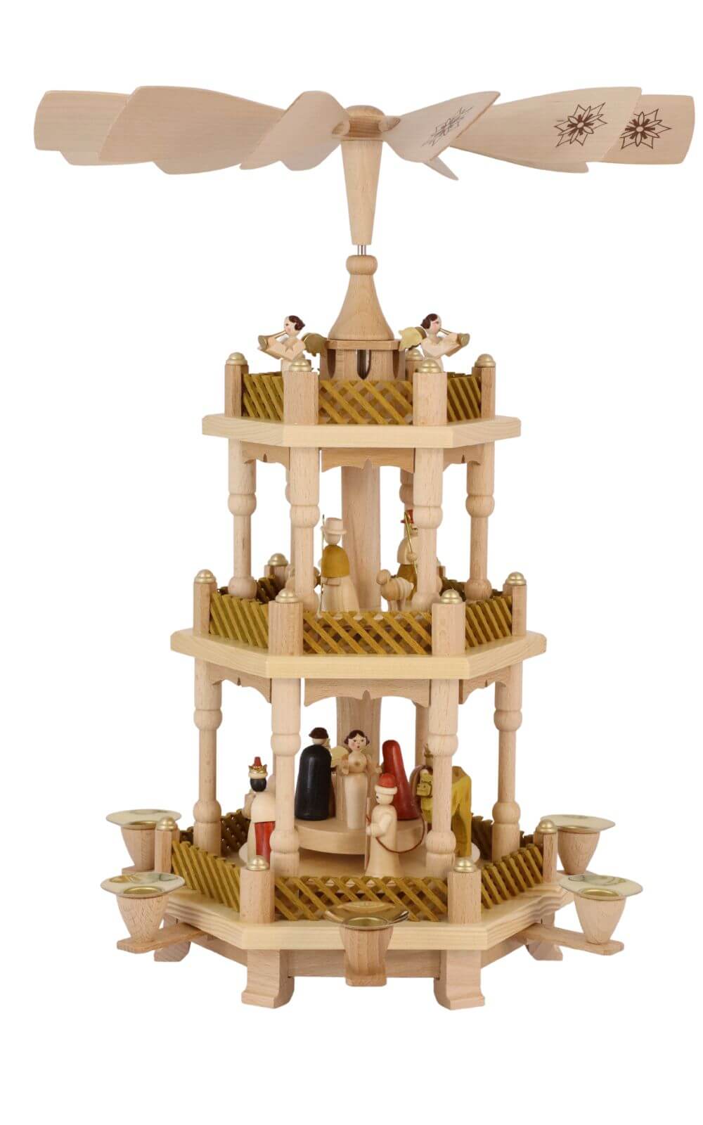 Christmas Pyramid Holy Story, 3- tiered, natural, 40 cm by Richard Glässer GmbH from Seiffen in the Ore Mountains