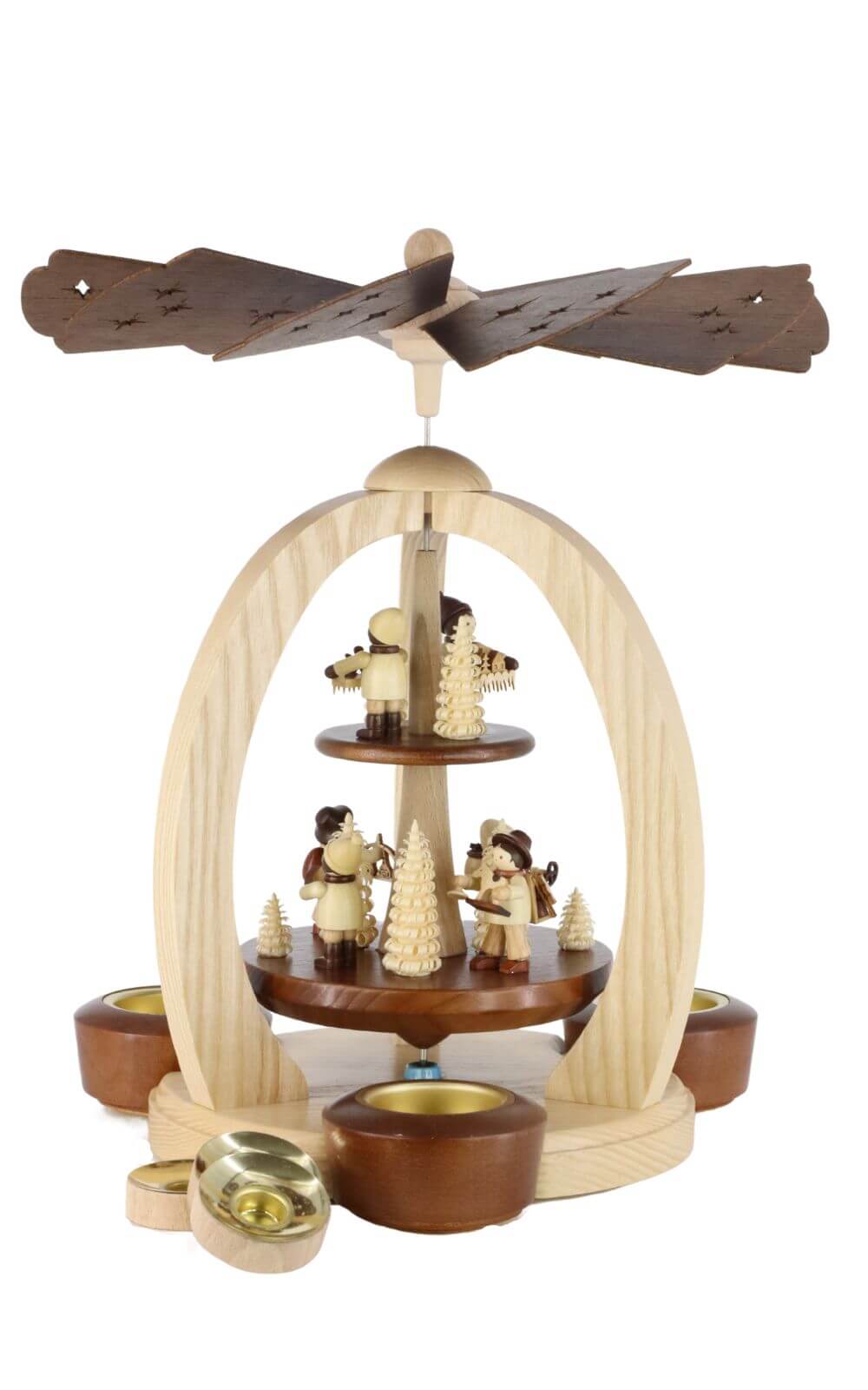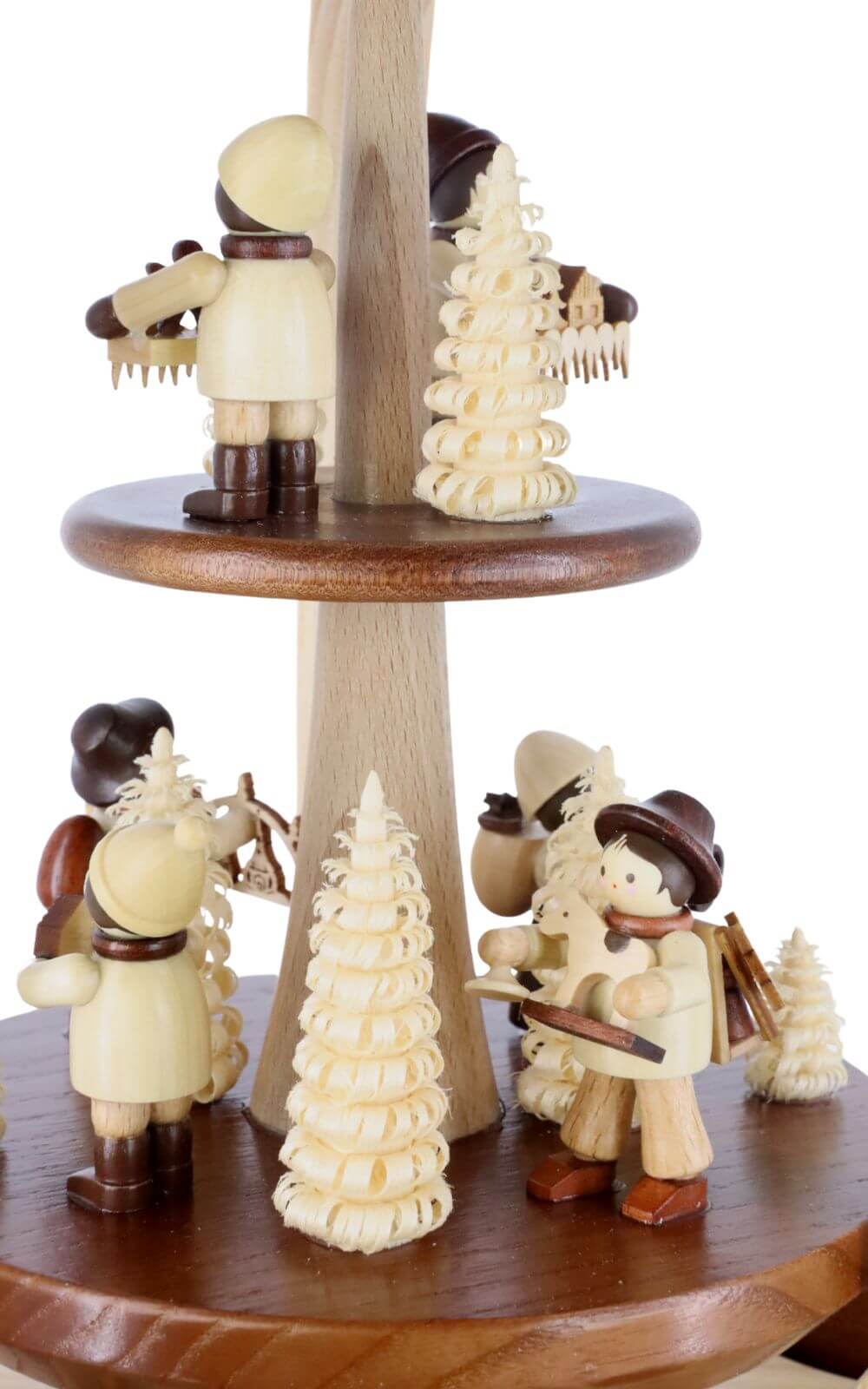 The Christmas pyramid merchant in traditional design and natural shades represents a real eye-catcher. Made from native woods such as maple, alder, ash, spruce, beech and linden, this product stands for sustainability and the high quality "Made in Germany".