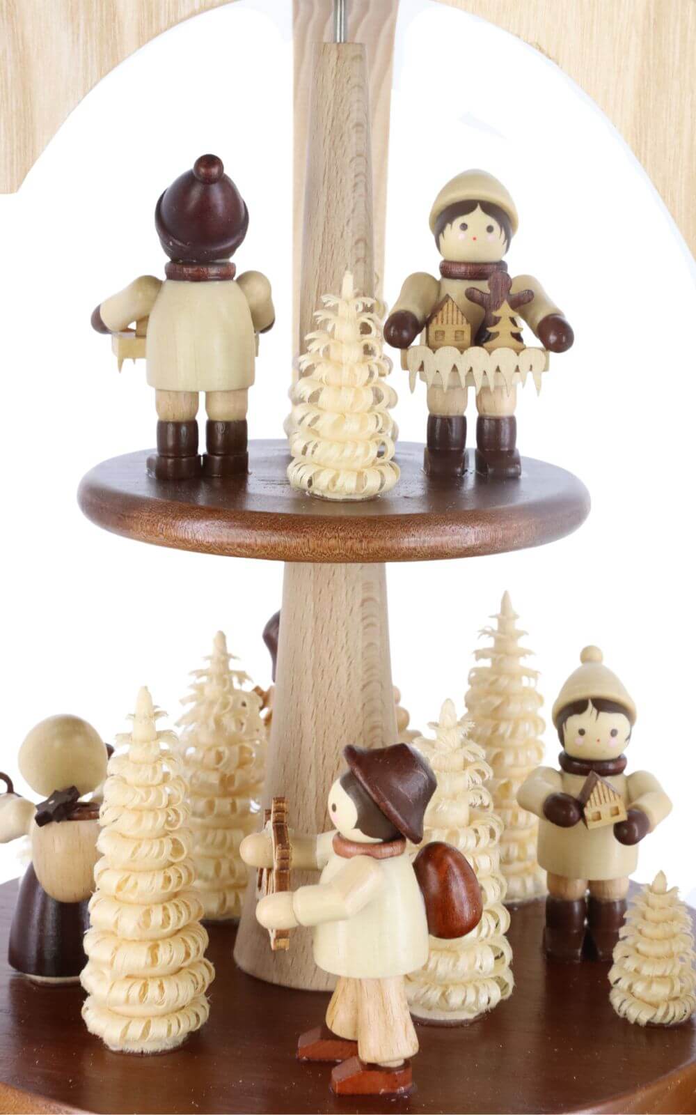 The double-decker Christmas pyramid merchant represents more than a simple Christmas decoration. It is a fascinating piece of Erzgebirge tradition and master craftsmanship. With its warm lighting and natural color scheme, it enriches any room with a festive atmosphere. This season, let yourself be enchanted by the uniqueness and warmth, that this handmade Christmas pyramid radiates.