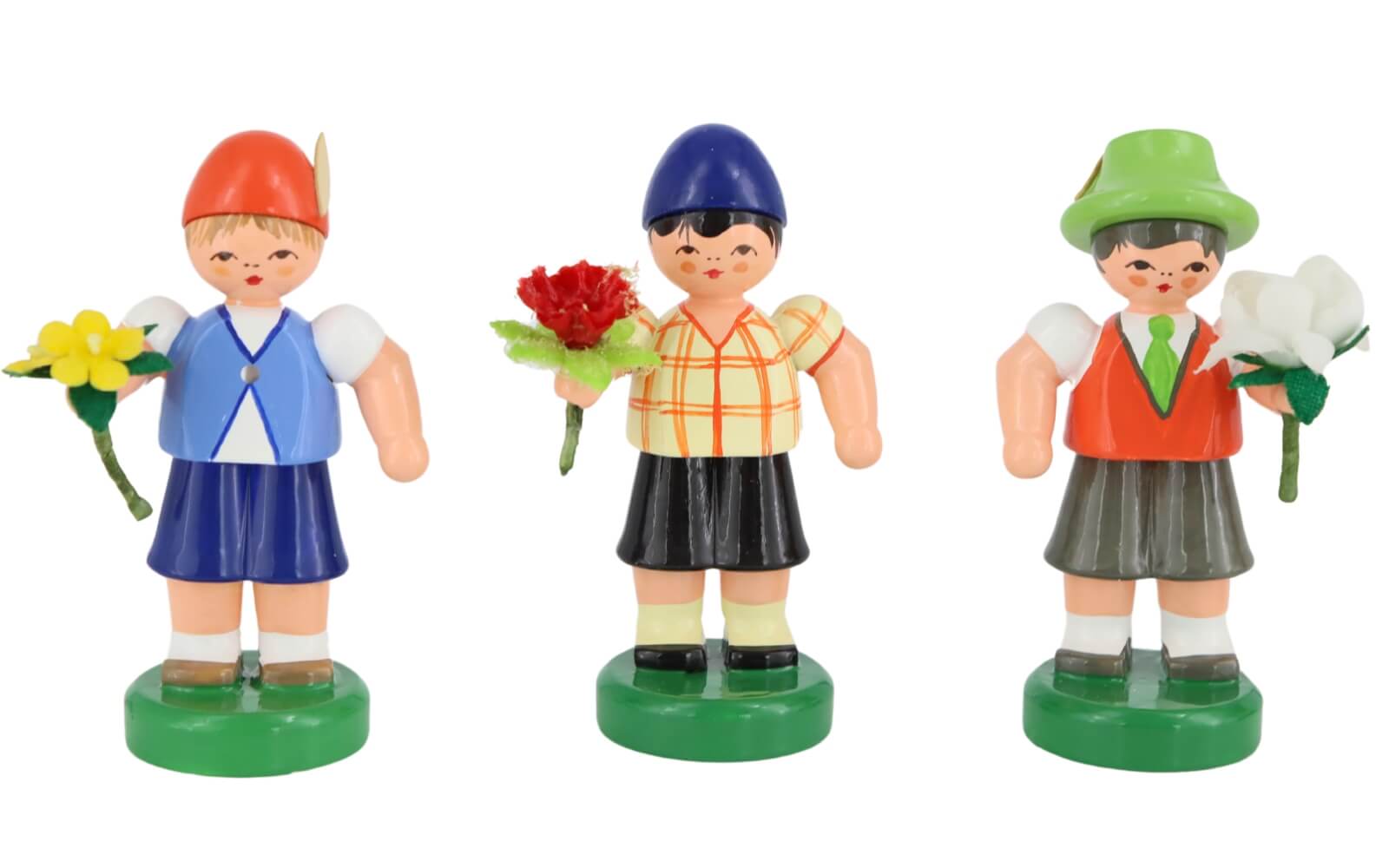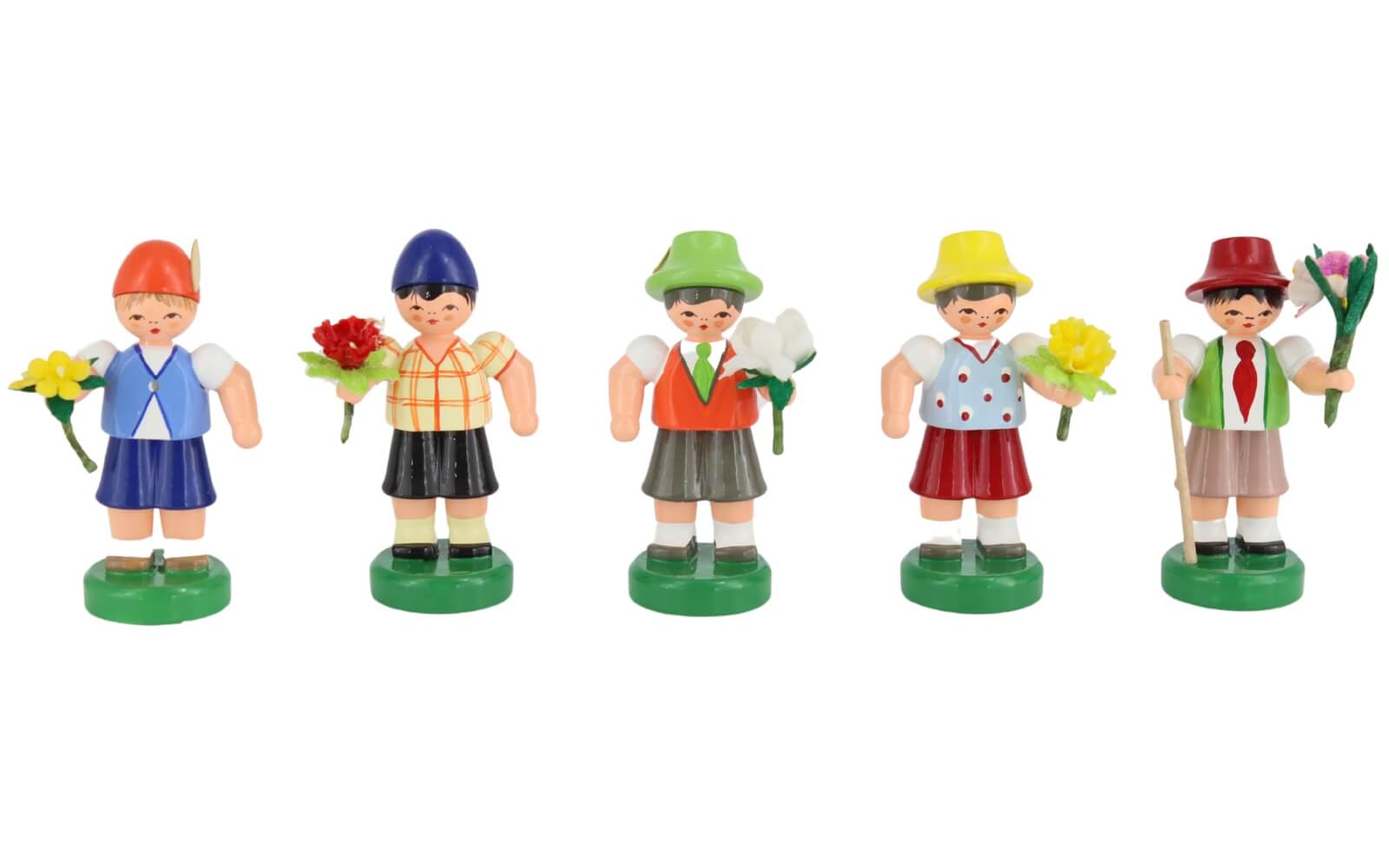 Miniaturen Blumenjungen, 5 Stück handbemalt, 7cm von Figurenland Uhlig GmbH aus Seiffen im Erzgebirge
