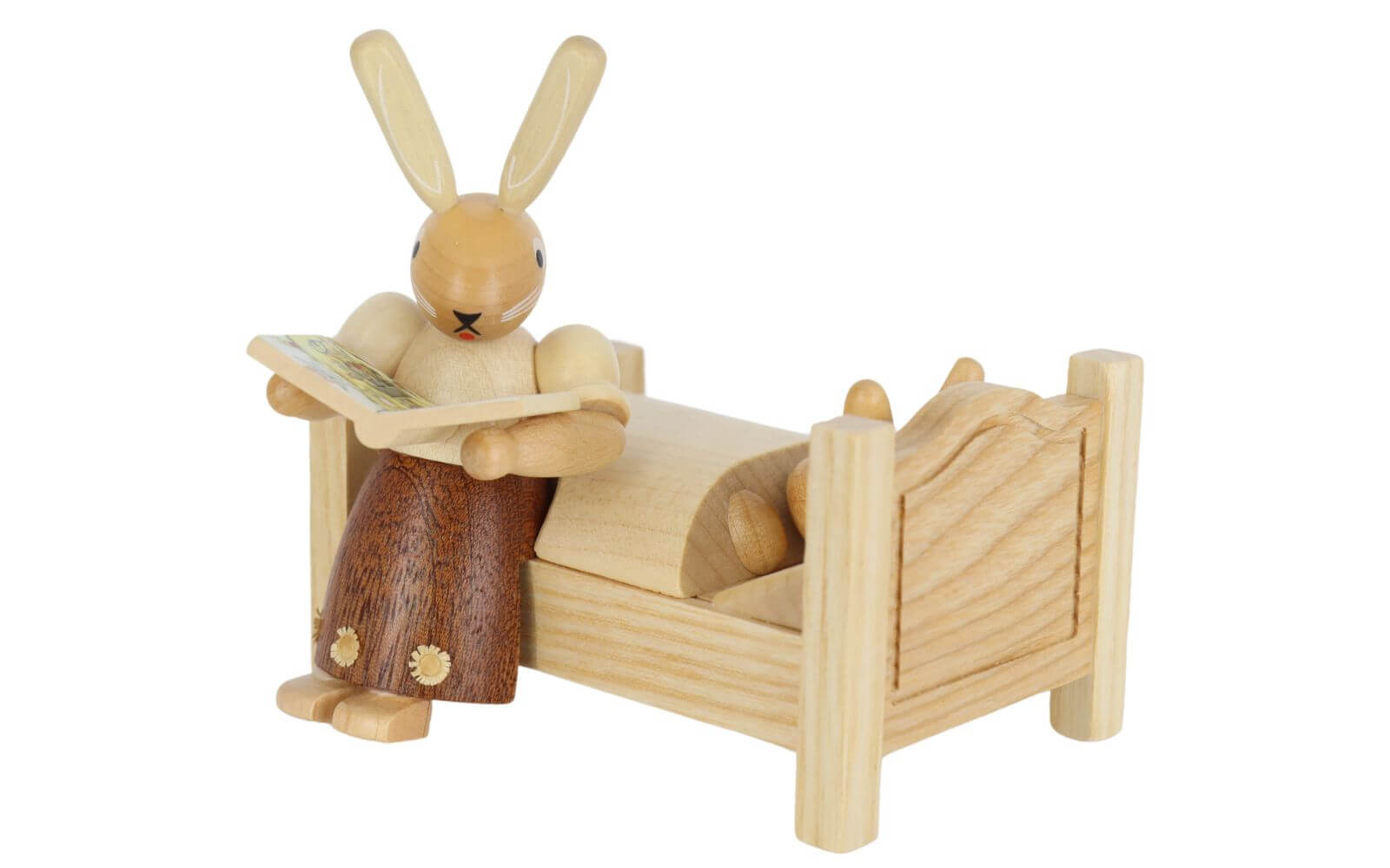Osterhase - Mutter erzählt Gute-Nacht-Geschichten, 10 cm, natur von Müller Kleinkunst aus Seiffen im Erzgebirge