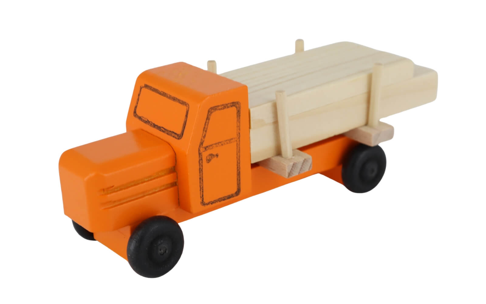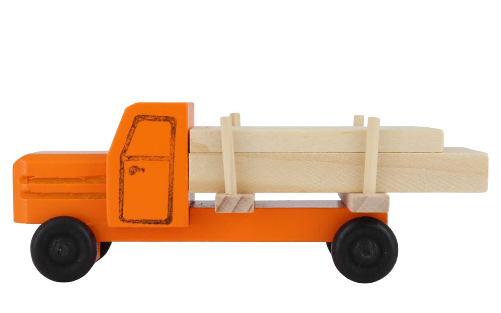 Holzspielzeug LKW mit Schnittholz, farbig von Robbi Weber aus Seiffen im Erzgebirge