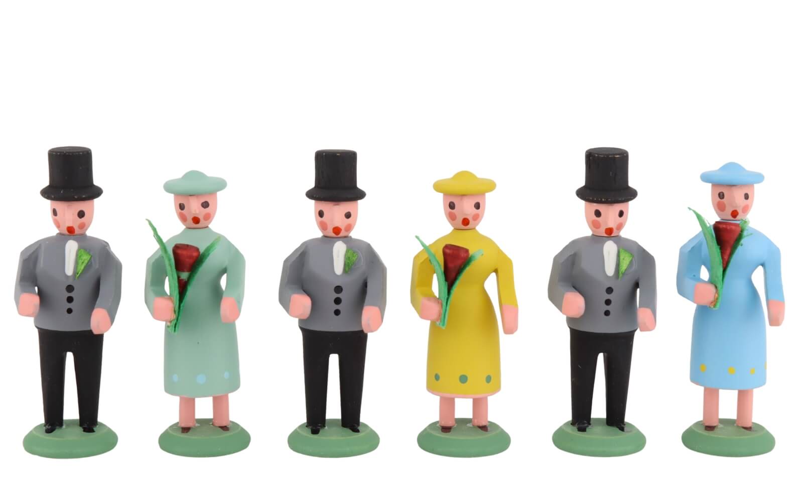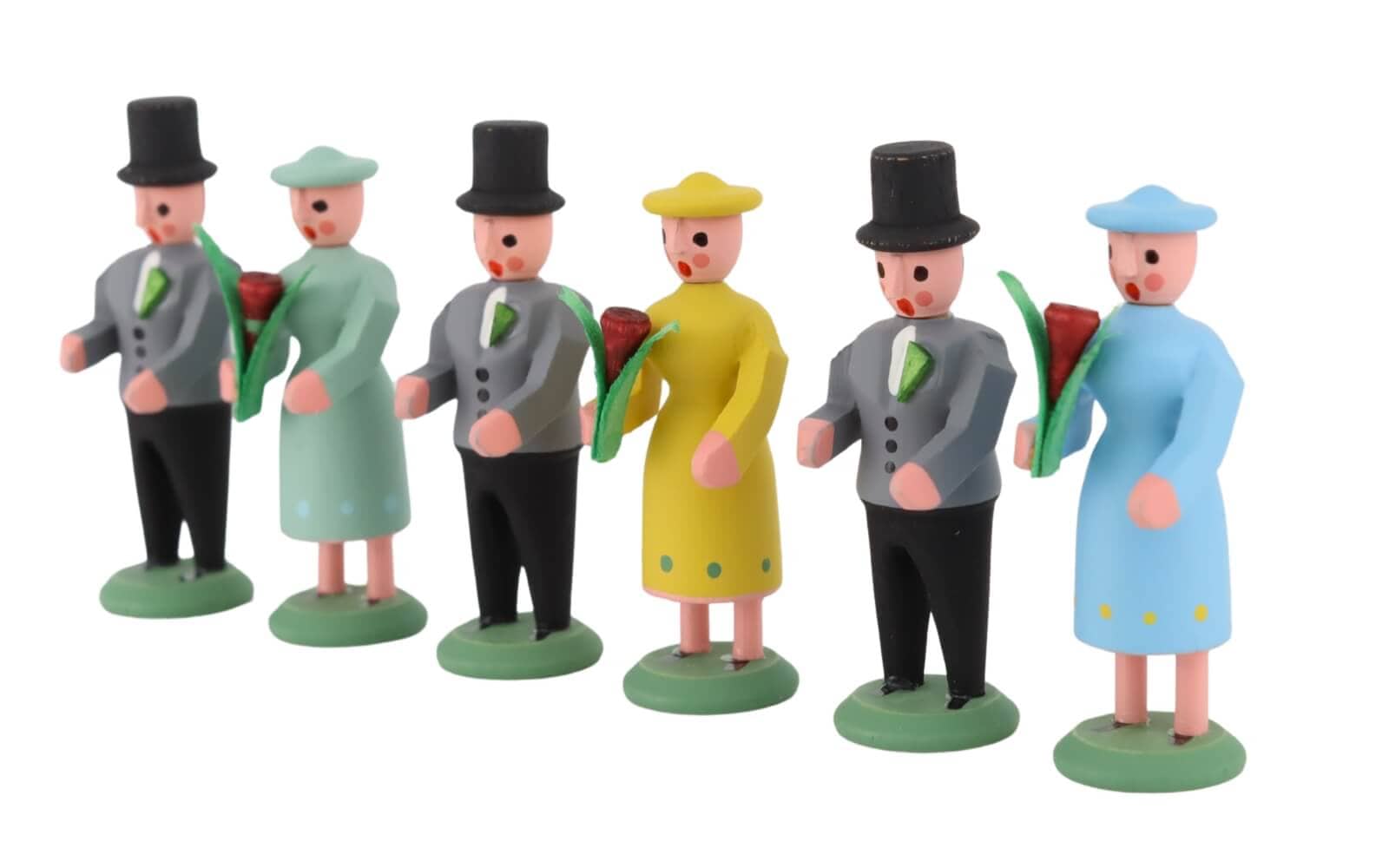 Obwohl der Miniatur Brautzug eine Hochzeitsgesellschaft darstellt, ist er nicht nur auf die Hochzeitssaison beschränkt. Seine ganzjährige Anziehungskraft macht ihn zu einem perfekten Dekorationsstück für Ihr Zuhause oder als einzigartiges Geschenk für besondere Anlässe. Die Miniaturfiguren eignen sich hervorragend, um in Regalen, auf dem Kaminsims oder als Teil einer größeren Sammlung erzgebirgischer Kunstwerke präsentiert zu werden. Viele Sammler schätzen die Handwerkskunst der Spielwarenmacher im Erzgebirge. Dies zeigt sich auch in diesem Brautzug. Alle Figuren sind handgemalt und mit kleinen aber feinen Details versehen. Zum Brautzug passt perfekt das Brautpaar mit Pfarrer, dass Sie ebenfalls bei seiffen.com erwerben können.