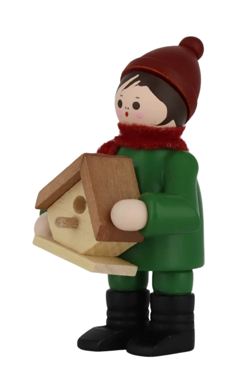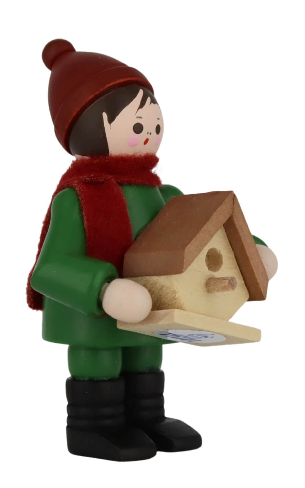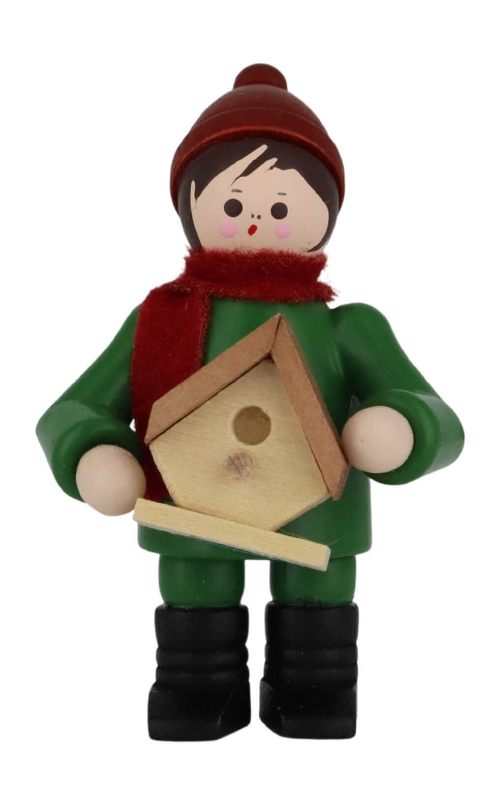 Miniatur Junge mit Nistkasten, farbig, 6 cm von Romy Thiel passt zu Sammlern mit Blick fürs Detail