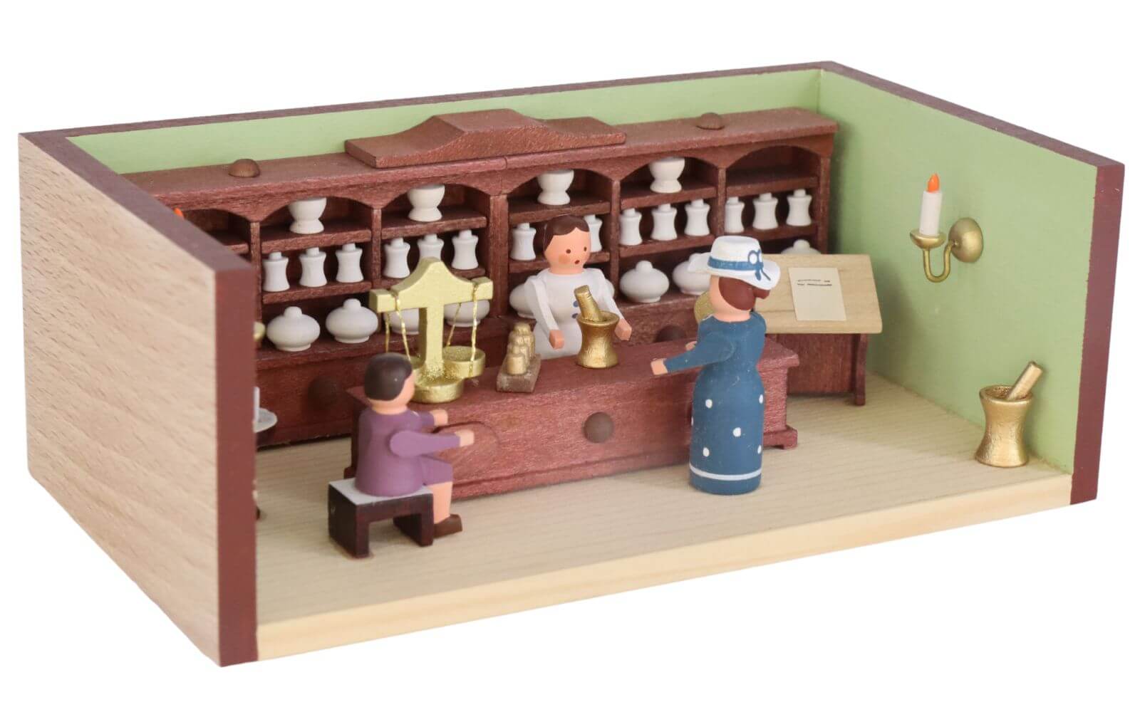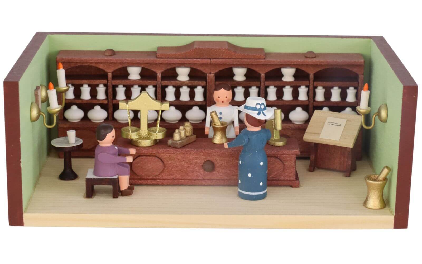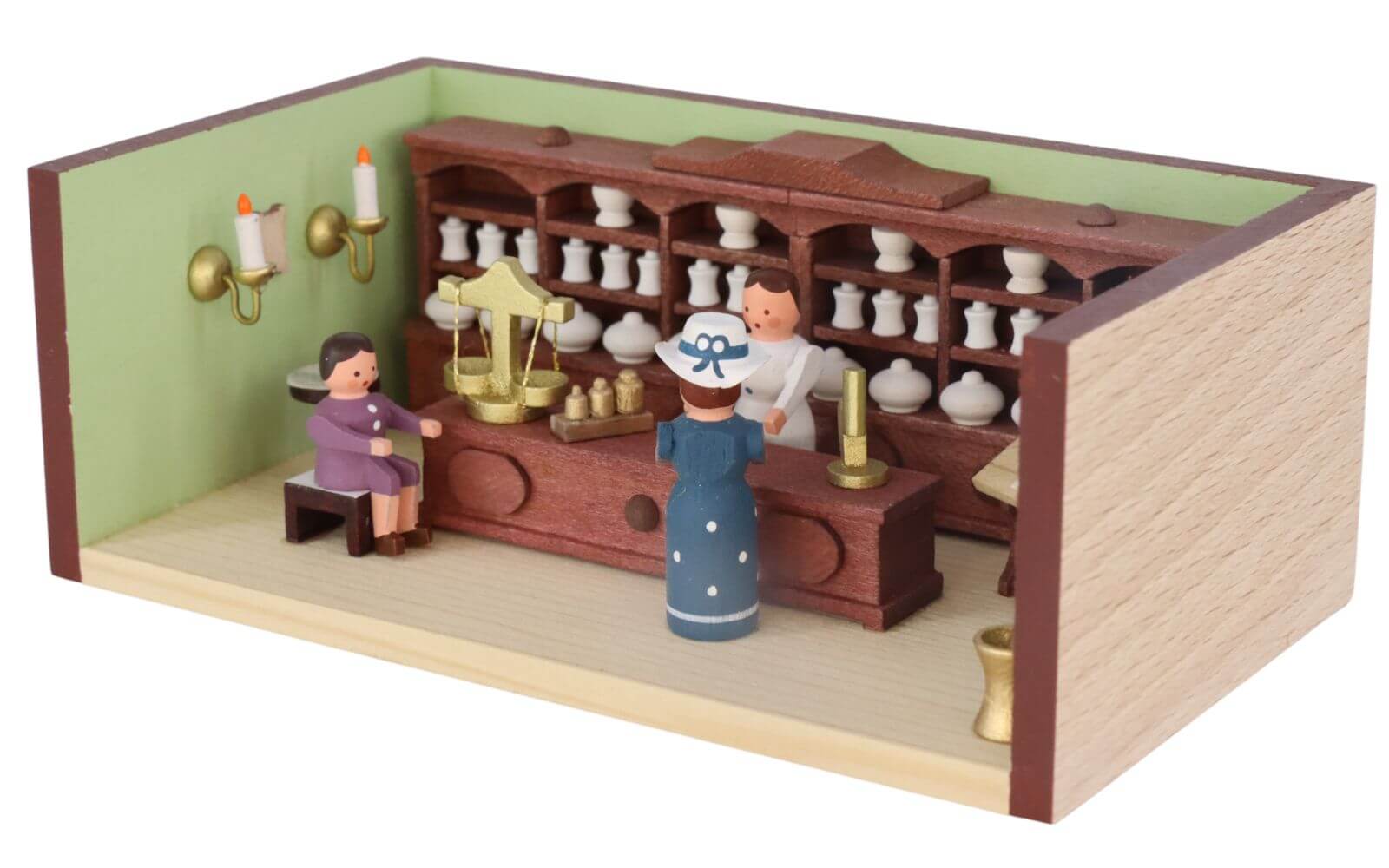 Miniaturstübchen Apotheke mit Apothekerin von Gunter Flath aus Seiffen im Erzgebirge