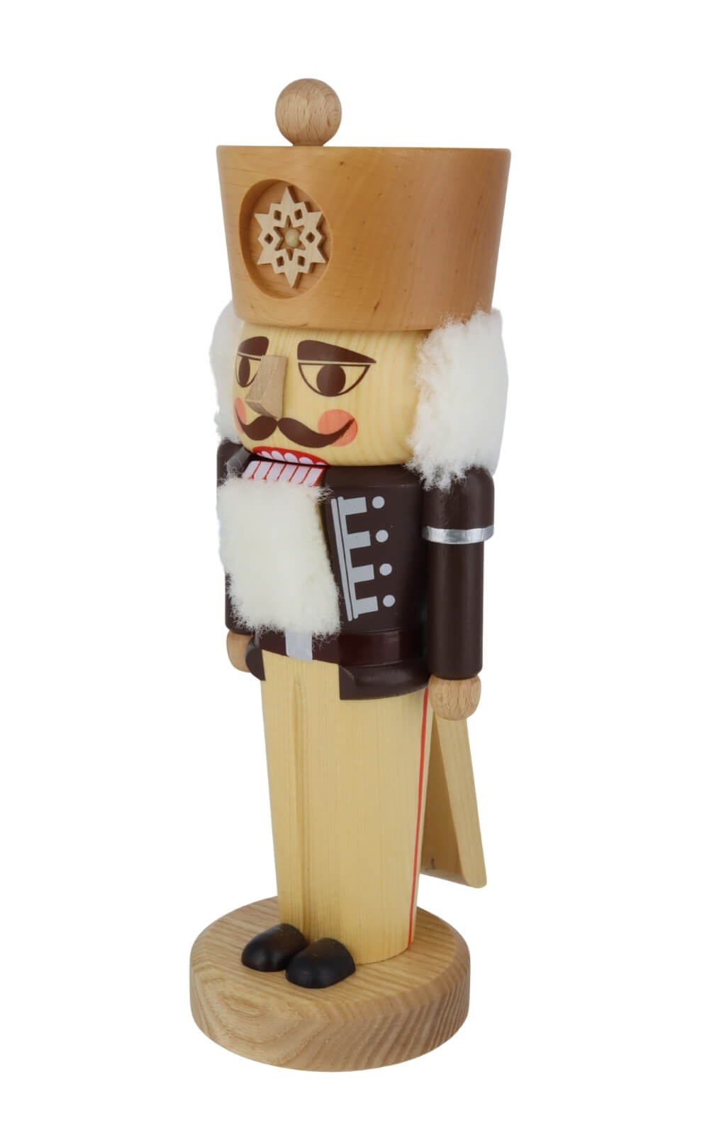 Richard Glässer GmbH, ansässig im malerischen Kurort Seiffen im Erzgebirge, ist weltweit bekannt für seine hochwertigen Holzkunstwerke. Jeder Nussknacker König wird mit größter Sorgfalt und Präzision von Hand gefertigt. Die verwendeten Hölzer stammen aus heimischen Wäldern, darunter Ahorn, Buche, Erle, Esche, Fichte, Linde und Kiefer, was diesem Nussknacker seine einzigartige natürliche Optik verleiht. Die Herstellung erfolgt nach alten Traditionen und bringt so die reiche Handwerksgeschichte des Erzgebirges in Ihr Zuhause.