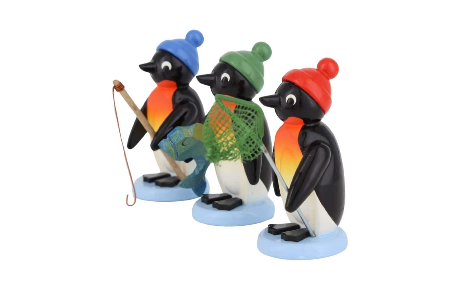 Miniatur Pinguine - Angler, 3-teilig von SEIFFEN.COM: Handwerkskunst aus dem Erzgebirge