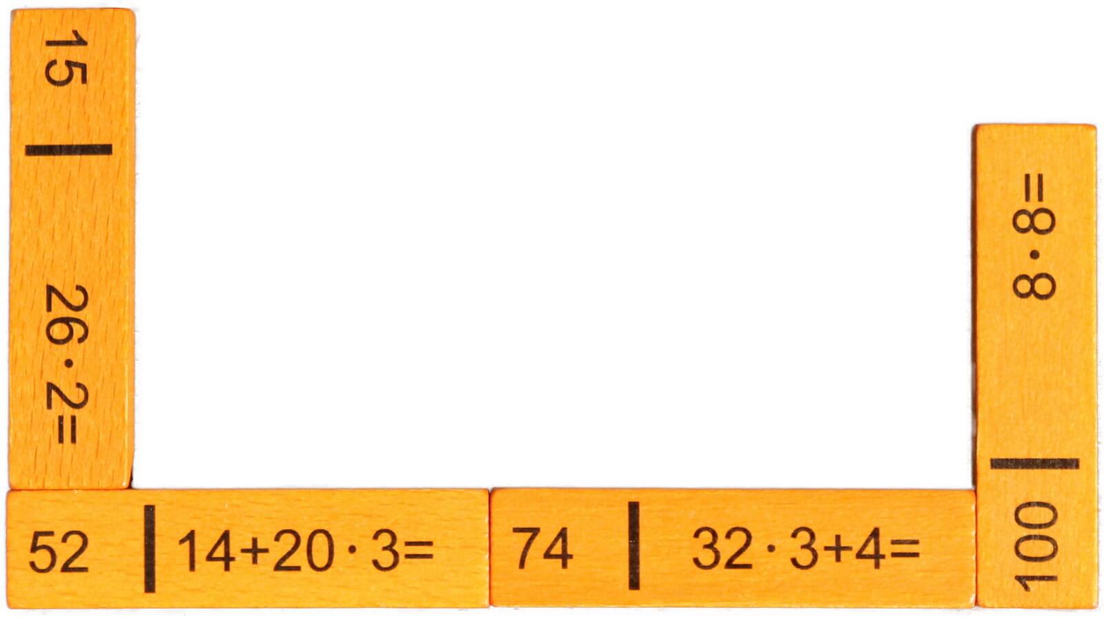 Geeignet für zwei bis fünf Spieler, beginnt das Spiel damit, dass jedem Spieler sechs Steine ausgeteilt werden. Ein Startstein wird aufgedeckt und die Spieler müssen reihum passende Steine anlegen, die entweder das entsprechende Ergebnis oder eine passende Aufgabe zeigen. Sieger ist, wer zuerst alle seine Steine losgeworden ist.