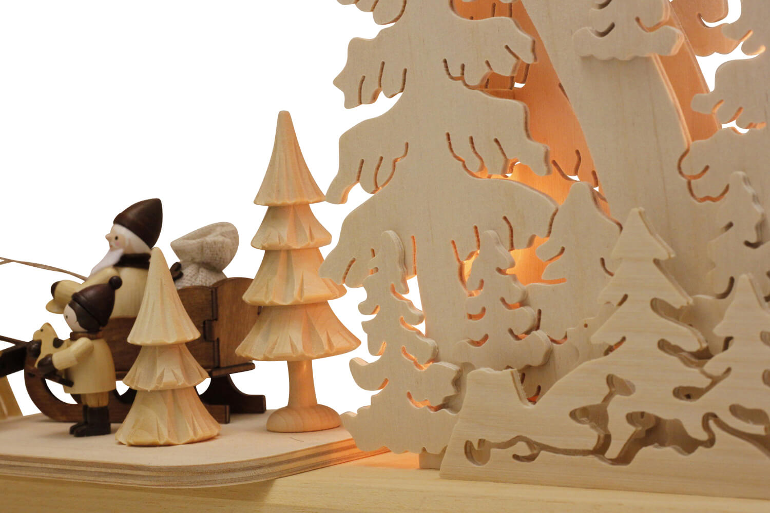 Mit seinem Design, das Tradition und Moderne vereint, und seiner hochwertigen Verarbeitung ist der Schwibbogen "Rentierschlitten" mit indirekter Beleuchtung von Romy Thiel ein echtes Highlight für jede Weihnachtsdekoration und ein Beweis für die Lebendigkeit traditioneller Handwerkskunst in der heutigen Zeit.