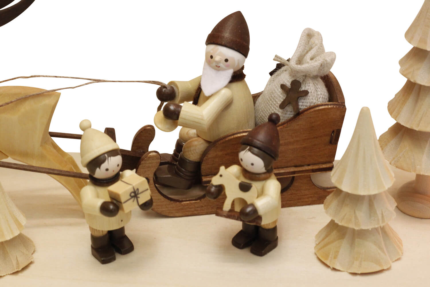 Romy Thiel, eine renommierte Herstellerin aus dem malerischen Ort Deutschneudorf im Erzgebirge, steht für qualitativ hochwertige Handwerkskunst "Made in Germany". Ihre Schwibbögen sind weithin bekannt und geschätzt für ihre Detailtreue und die Verwendung heimischer Hölzer wie Ahorn, Erle, Esche, Fichte, Buche und Linde. Das Motiv des Nikolaus mit seinem Schlitten, gezogen von majestätischen Rentieren, verleiht jedem Raum eine besinnliche Atmosphäre und trägt die Magie der Weihnachtszeit direkt in Ihr Zuhause.