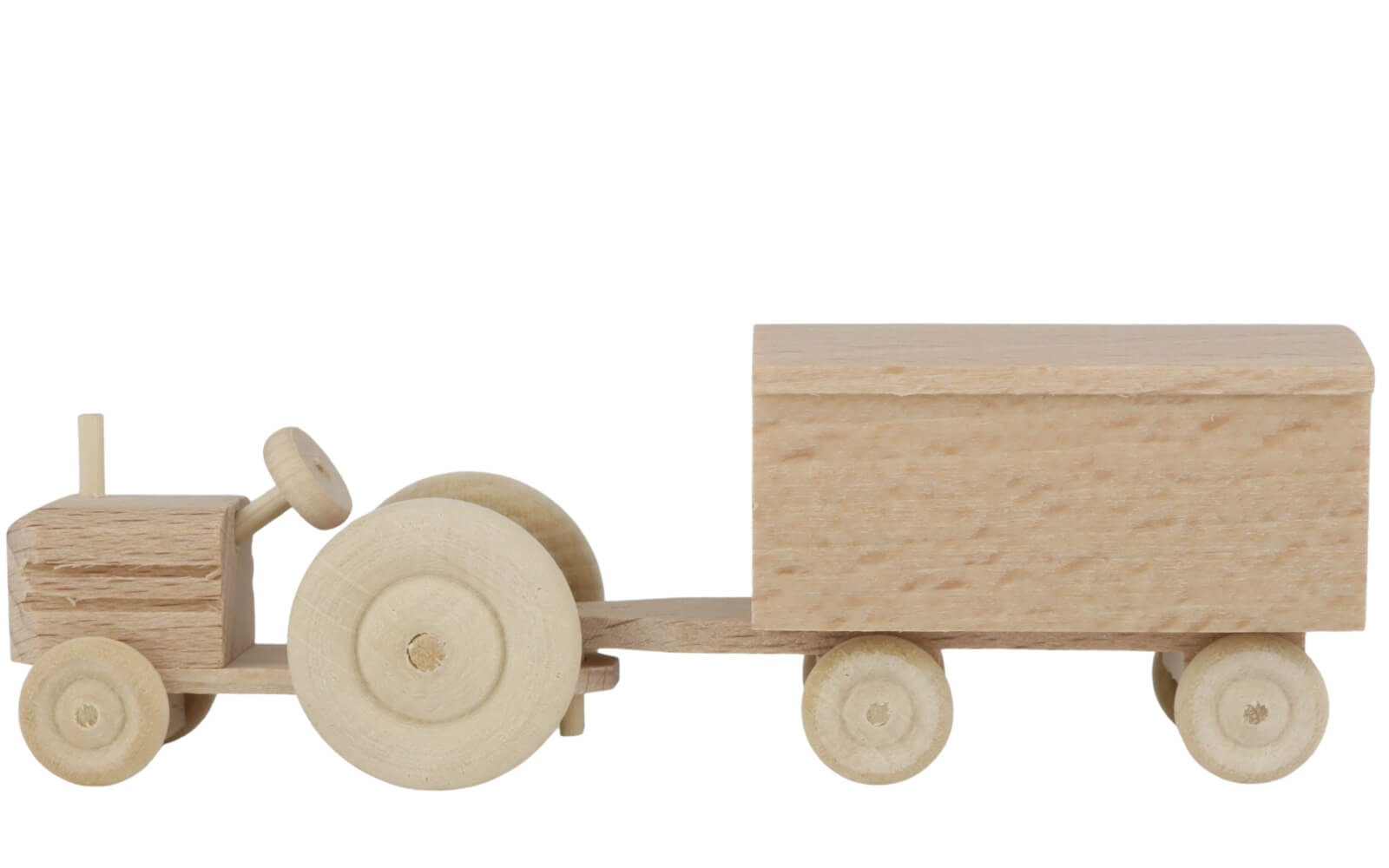 Holzauto - Traktor mit Kofferanhänger, natur von Robbi Weber aus Seiffen im Erzgebirge