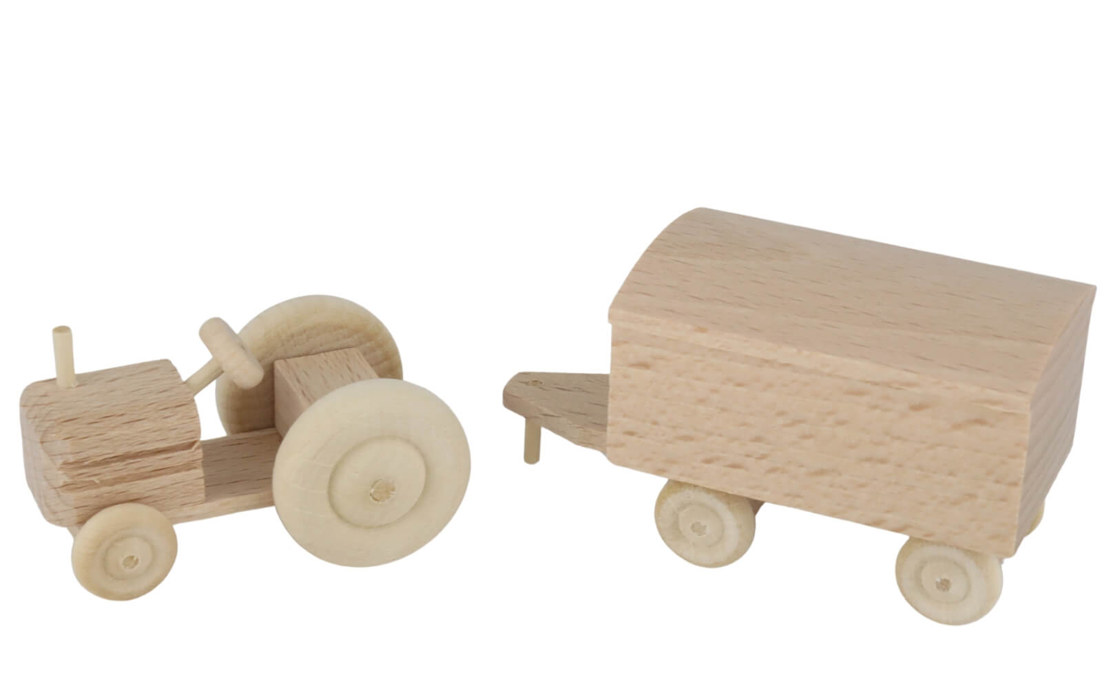 Holzauto - Traktor mit Kofferanhänger, natur von Robbi Weber