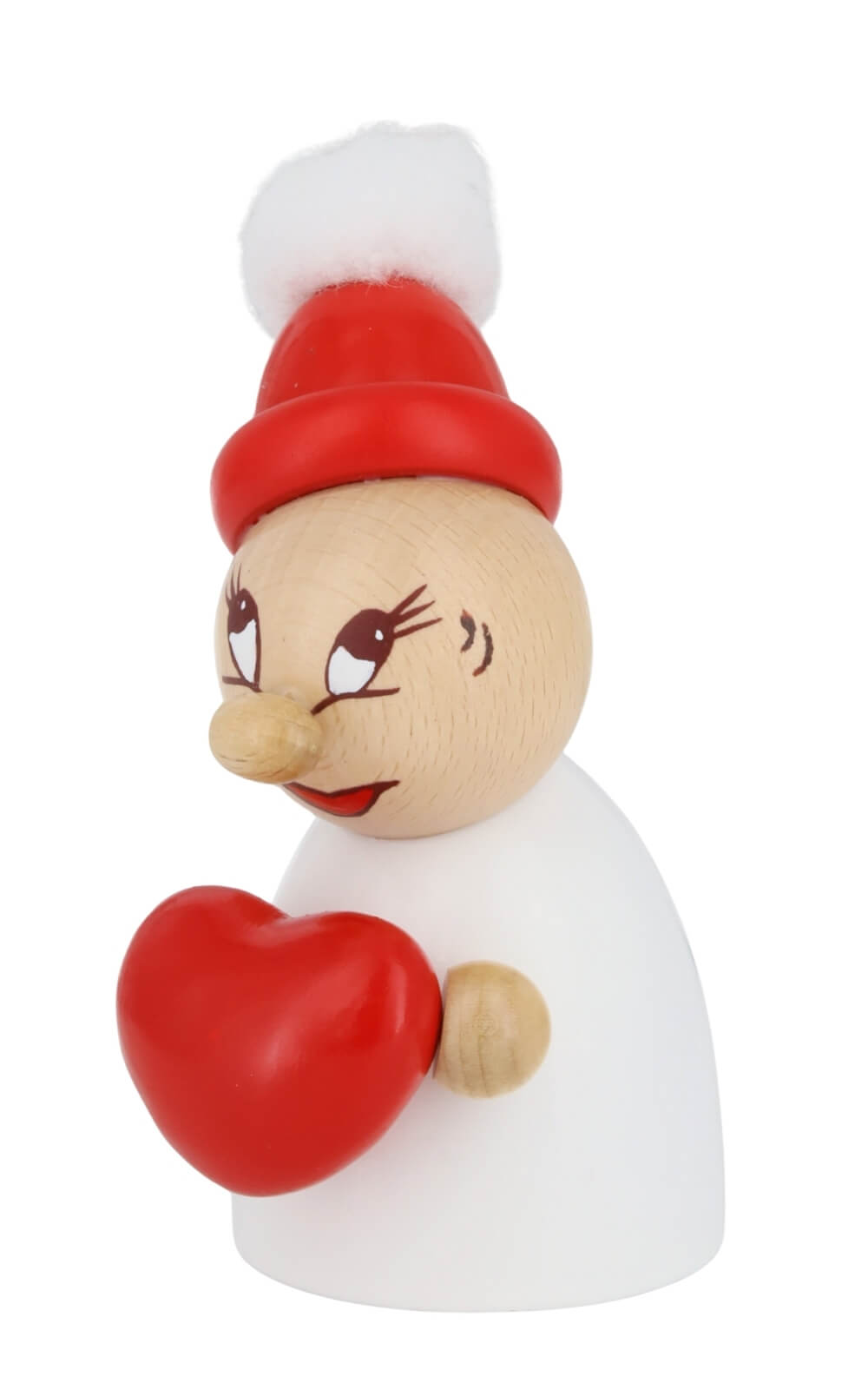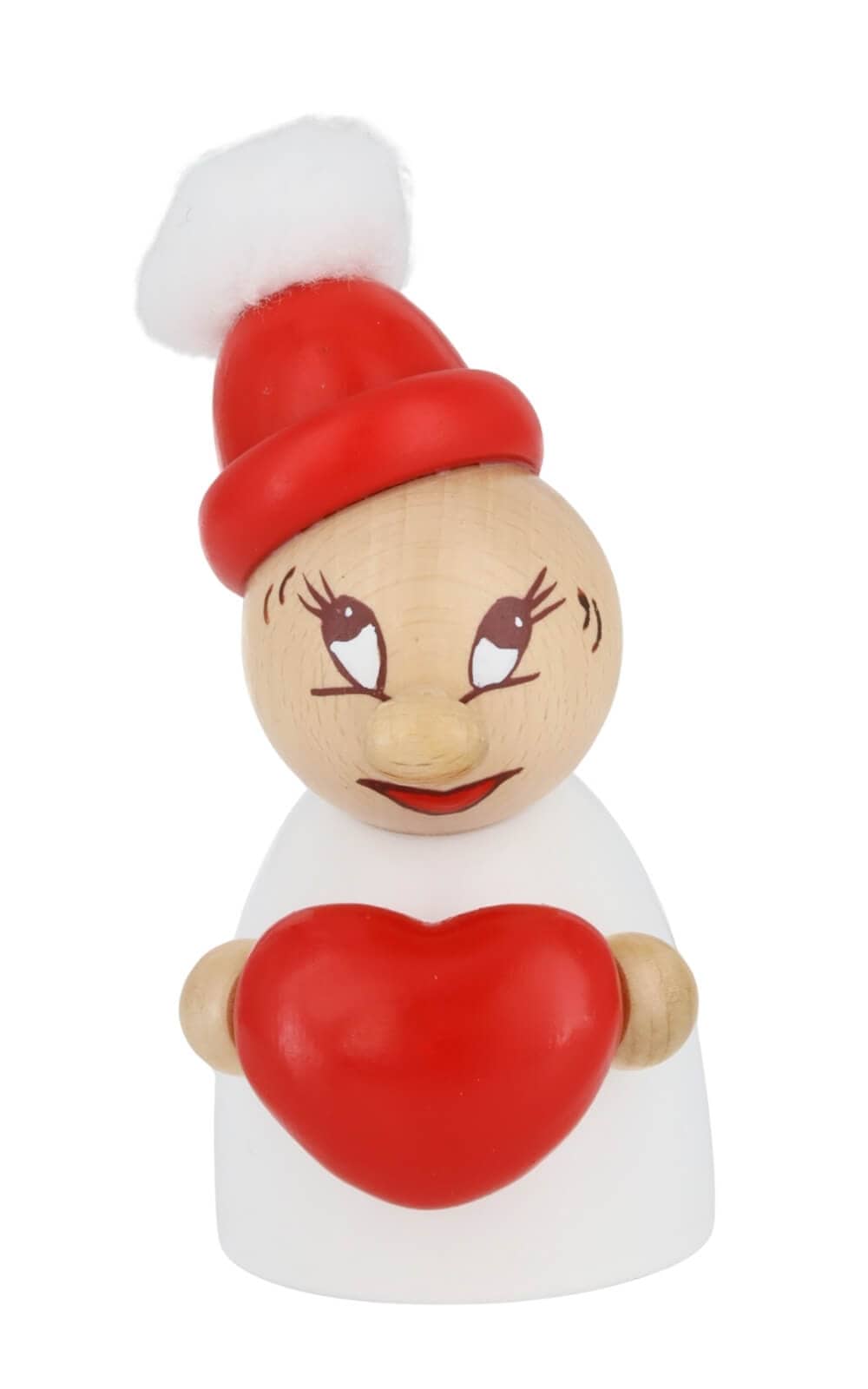 Diese Miniatur Valentine mit roter Holzmütze, Bommel und Herz - Clumsy von Steinbach sagt auf ihre ganz eigene Weise: „Du bist mir wichtig.“