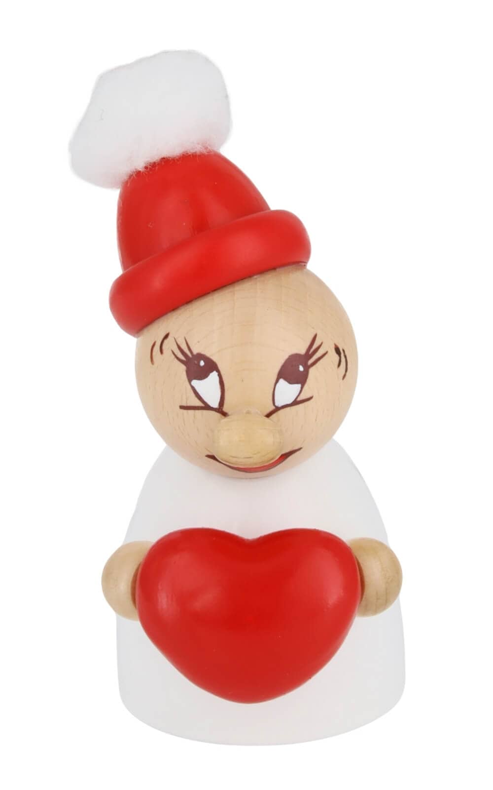 Die Miniatur Valentine mit roter Holzmütze, Bommel und Herz - Clumsy von Steinbach ist eine liebevolle Geste, die von Herzen kommt. Mit einem verschmitzten Lächeln und einem großen roten Herz in den Armen bringt sie die Sprache der Zuneigung auf ganz charmante Weise zum Ausdruck. Perfekt für alle, die am Valentinstag mehr sagen möchten als nur „Ich liebe dich“.