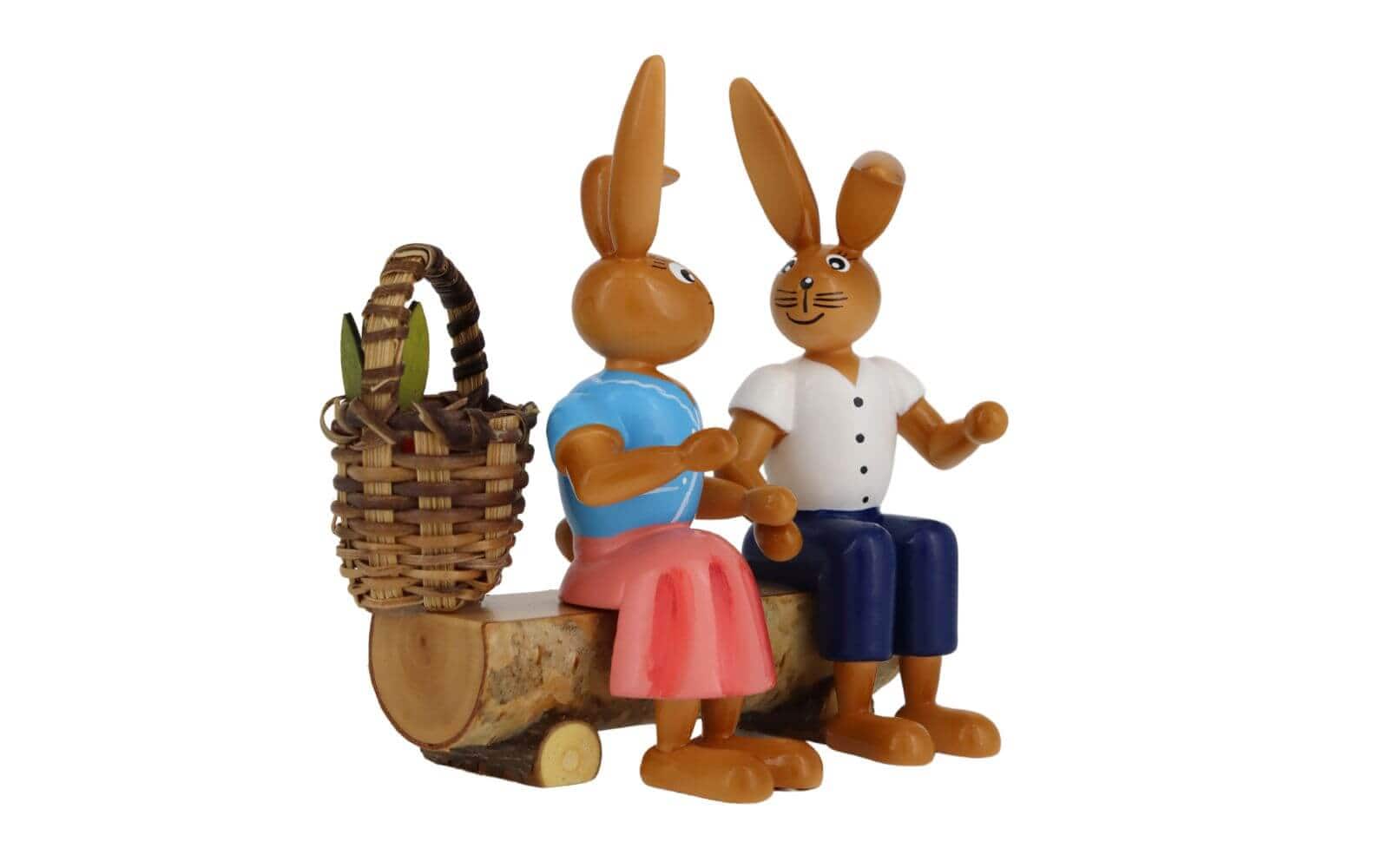 Easter bunny couple on bench, 9 cm by Holzkunst Gahlenz GmbH RuT from Oederan/OT Gahlenz in the Erzgebirge