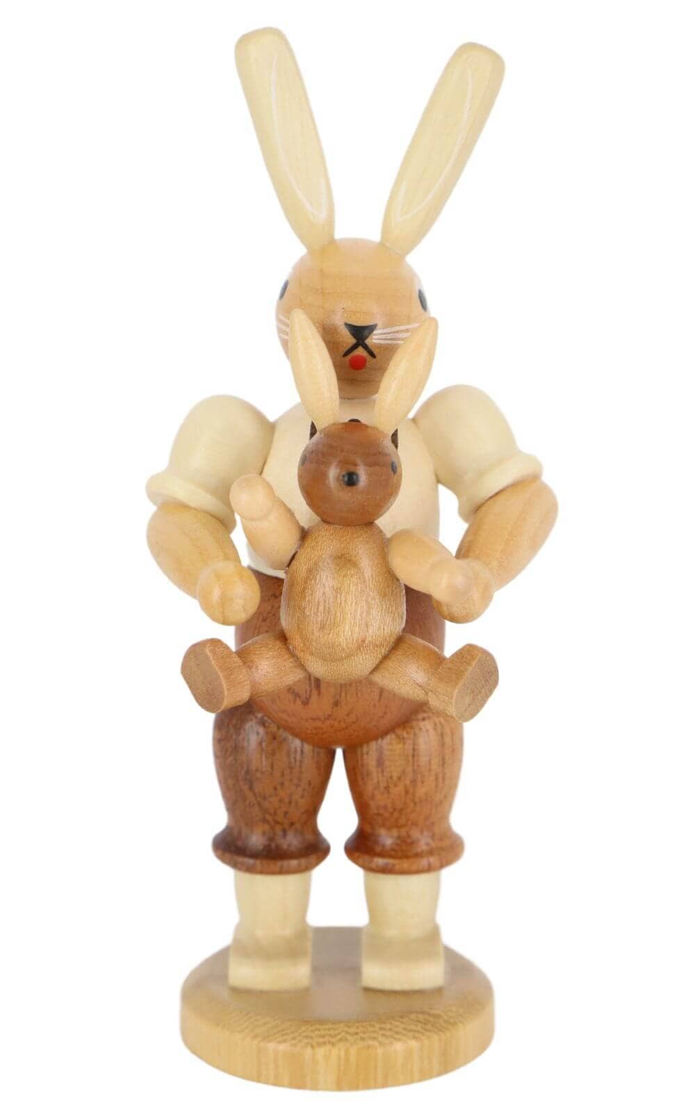 Bring a piece of Erzgebirge tradition into your home and be enchanted by the natural beauty and warm radiance of the Easter bunny father with child. An authentic masterpiece from the Erzgebirge, that enriches the Easter season and brings the spirit of spring into every home.
