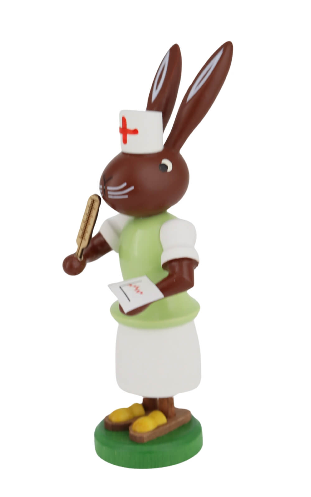 Easter, the festival of spring and renewal, traditionally brings bright colors and joy into our homes. But what, if the sumptuous Easter dinner is too heavy on the stomach? This is where the Easter bunny in the role of a nurse comes into play, an original work of art from the renowned workshop of Thomas Preißler in Seiffen, Erzgebirge. This hand-painted figurine is not only a decorative piece, but also a symbol of care and help in happy times. Equipped with a clinical thermometer and writing pad, this charming Easter bunny nurse offers quick help, be it with an imaginary pill or measuring the fever. With her nurse's cap and white coat, she is reminiscent of the classic nurse and therefore fits perfectly into the Easter celebrations.