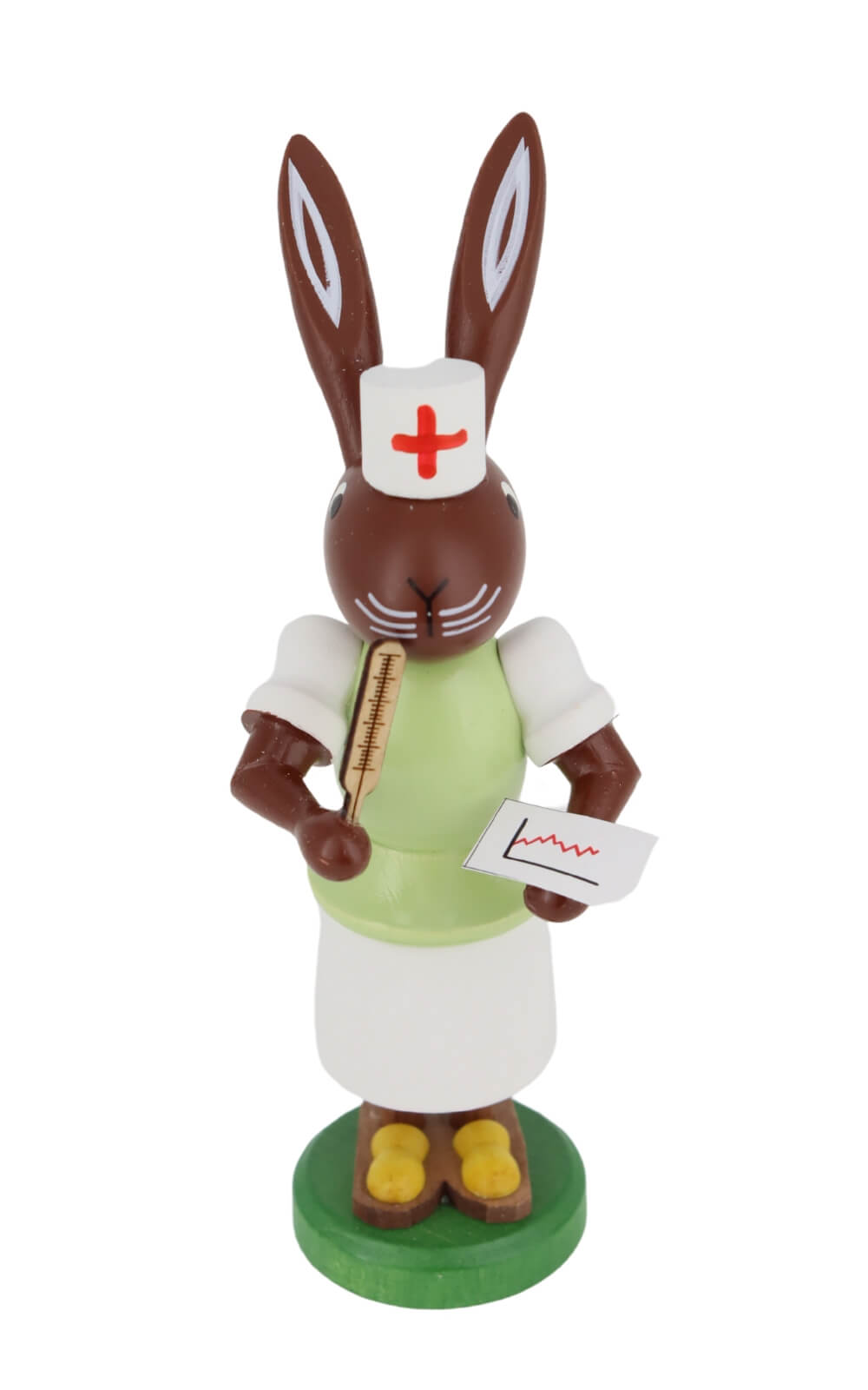 Behind every piece by Thomas Preißler is a long tradition of craftsmanship from the Ore Mountains. The Easter bunny nurse, with a height of 9 cm, is proof of the precision craftsmanship and attention to detail, that characterizes the family business. Their bright, fresh colors and the carefully designed little details, from the nurse's cap to the white coat, make them a highlight of any Easter decoration. These figurines are not only decorative objects, but also tell a story of care and attention, which makes them an indispensable companion through the Easter season.