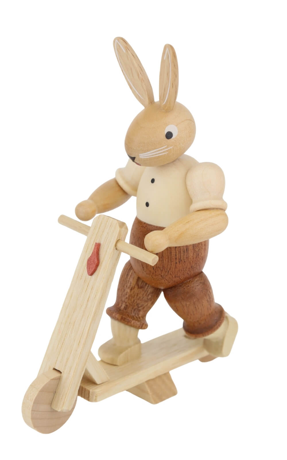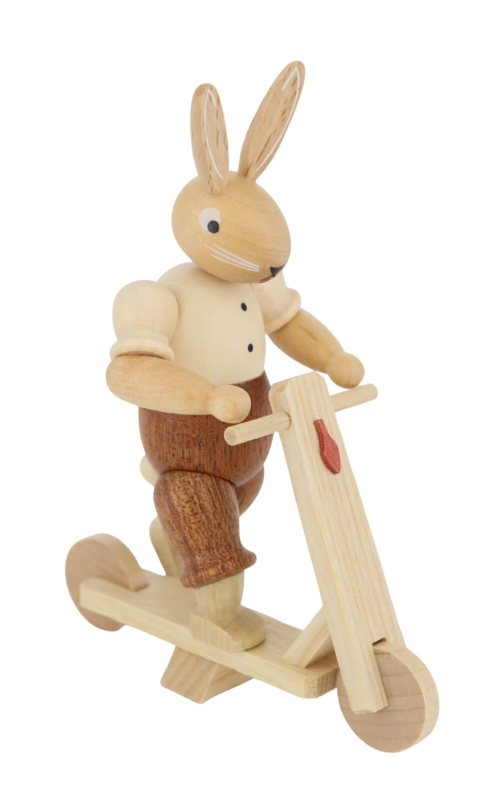 Made from local woods, the Easter Bunny on Scooter is notable for its durability and longevity. The use of natural materials and high-quality craftsmanship ensures that you will enjoy this special piece for many years. Müller Kleinkunst uses only the finest woods to ensure that each figure meets the highest quality standards.