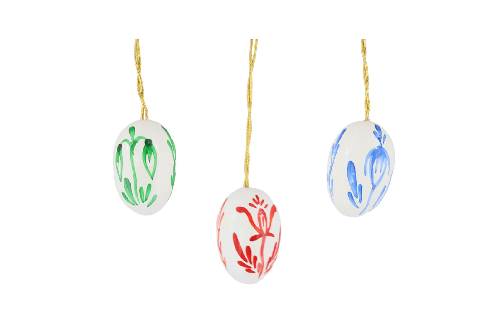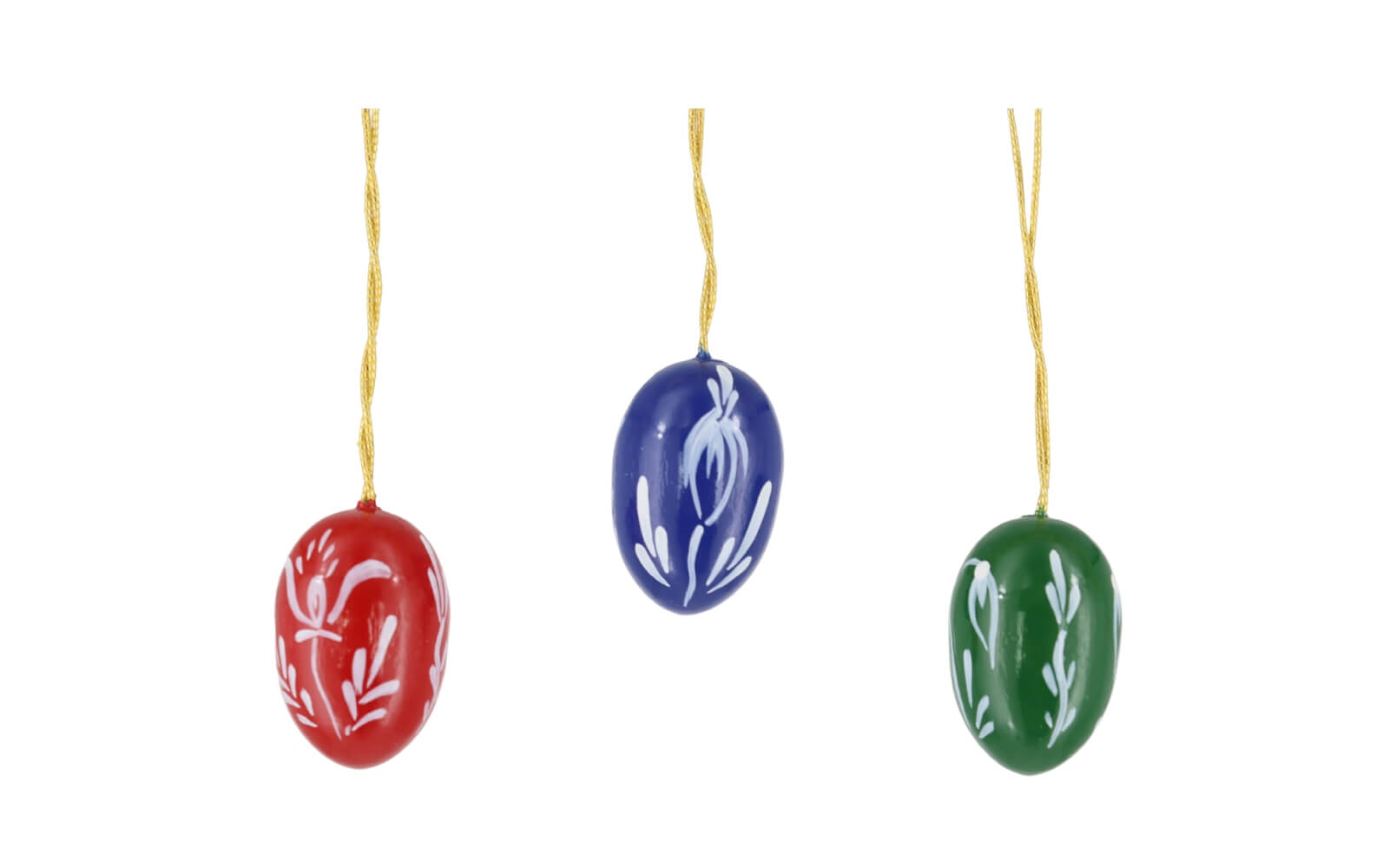 The Easter eggs are available in the color combinations white with red, red with white, white with green, green with white as well as white with blue and blue with white. Each egg is lovingly hand painted with floral patterns, which gives them a unique and exclusive design.