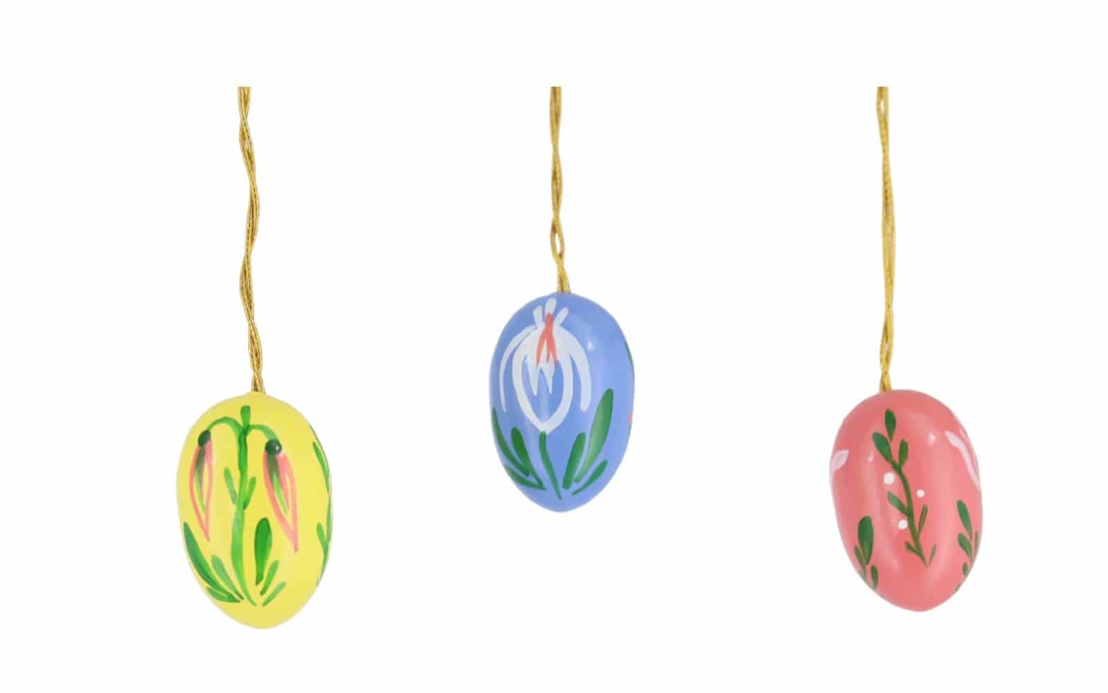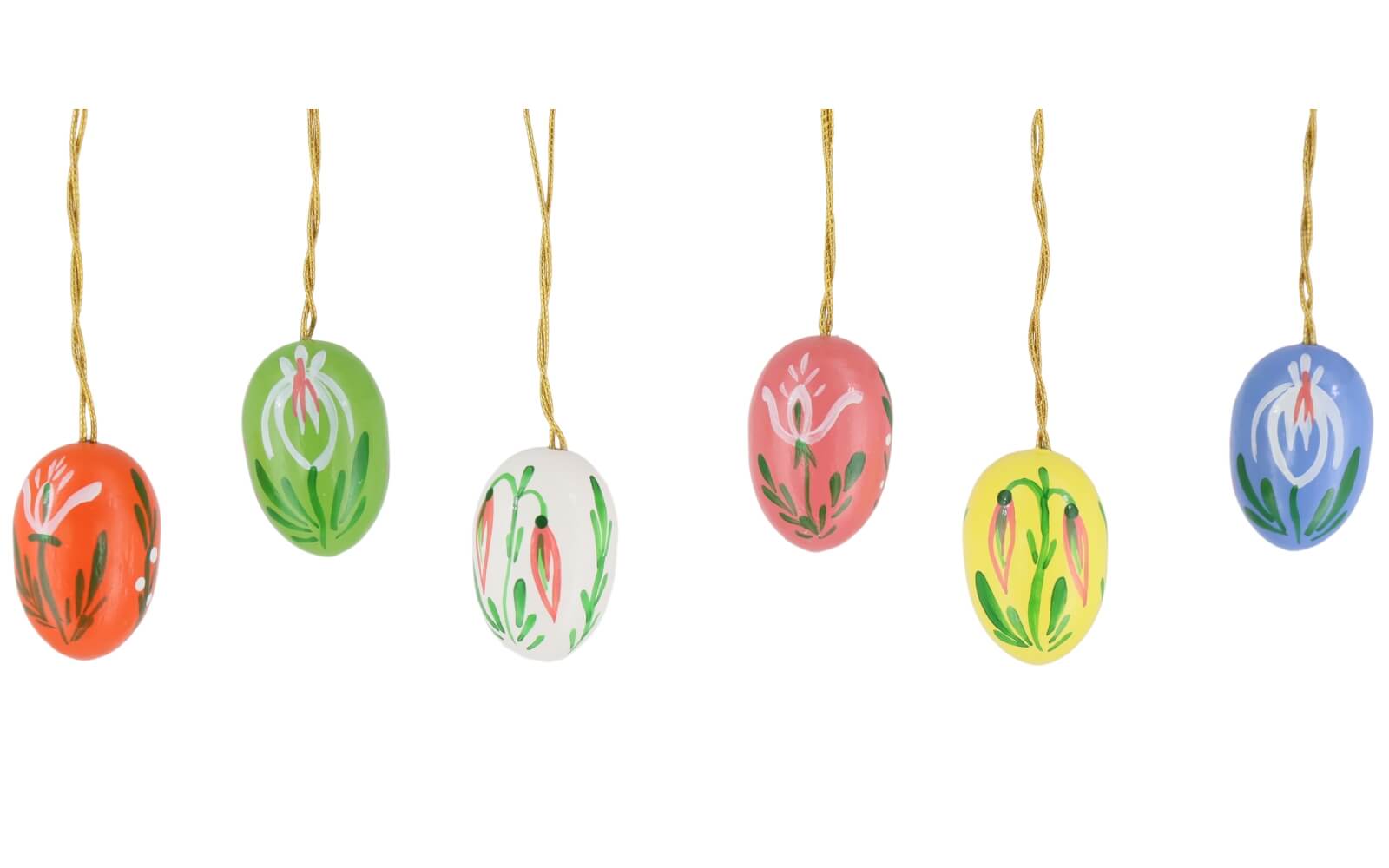 The set consists of six Easter eggs, each painted in a different color. This makes for a varied and colorful Easter decoration, which provides springtime freshness in any room.
