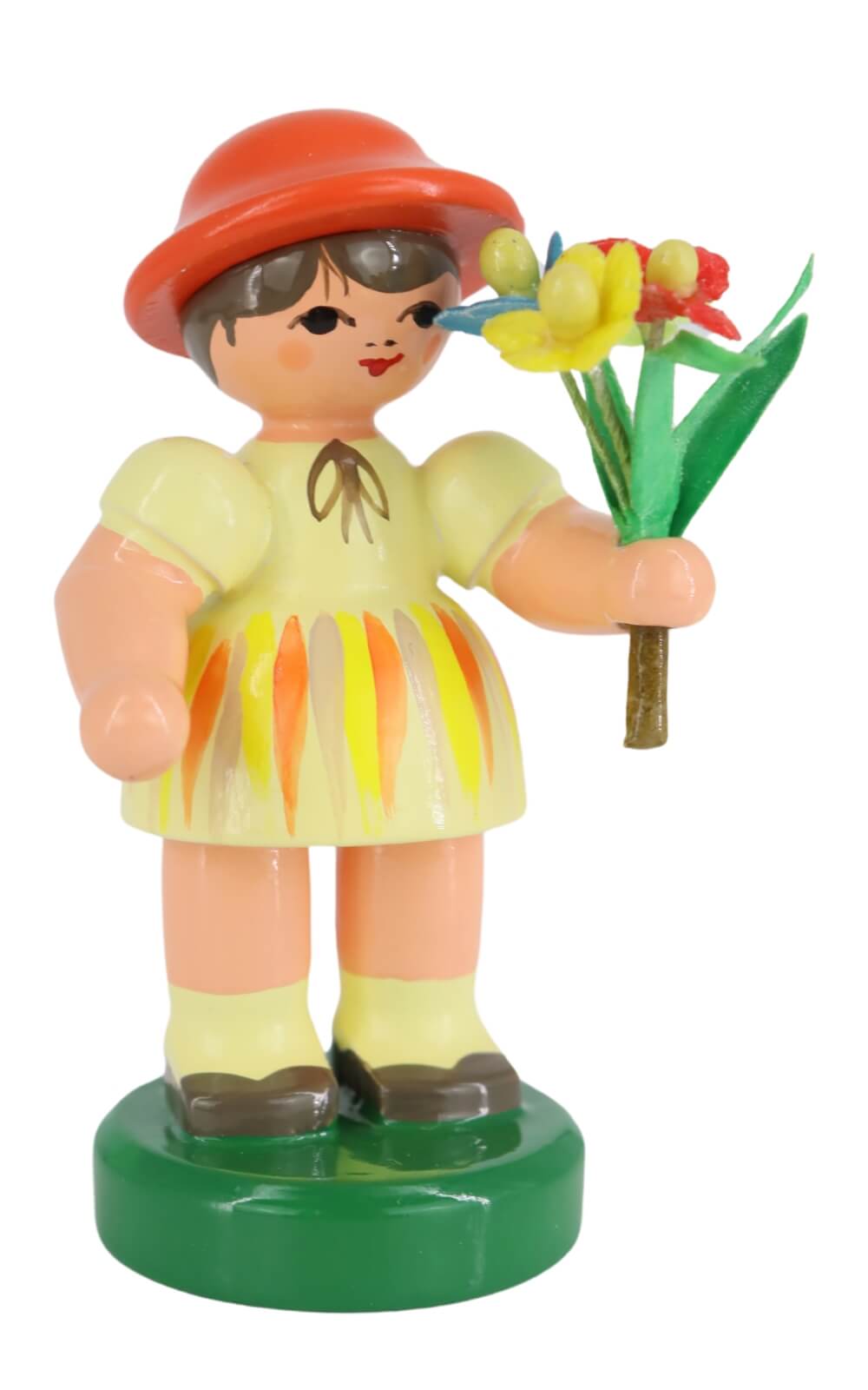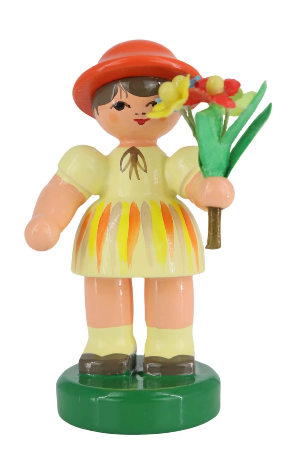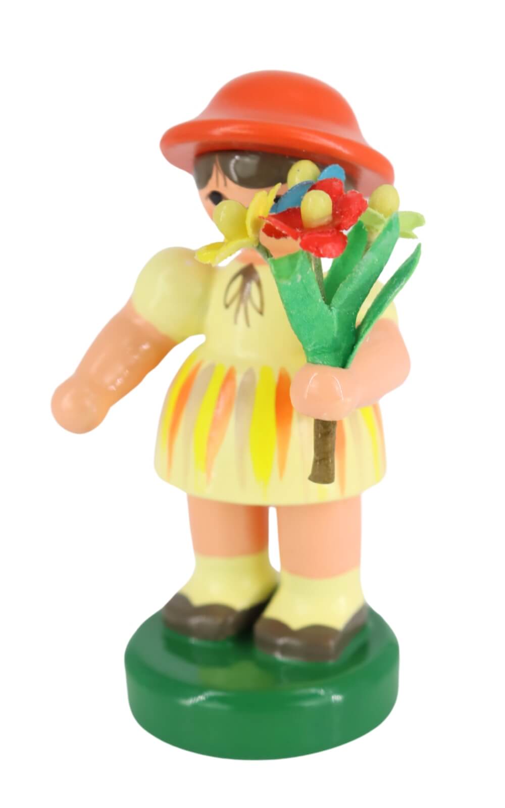 Miniature flower girl, light yellow/orange by Figurenland Uhlig GmbH from Seiffen in the Erzgebirge