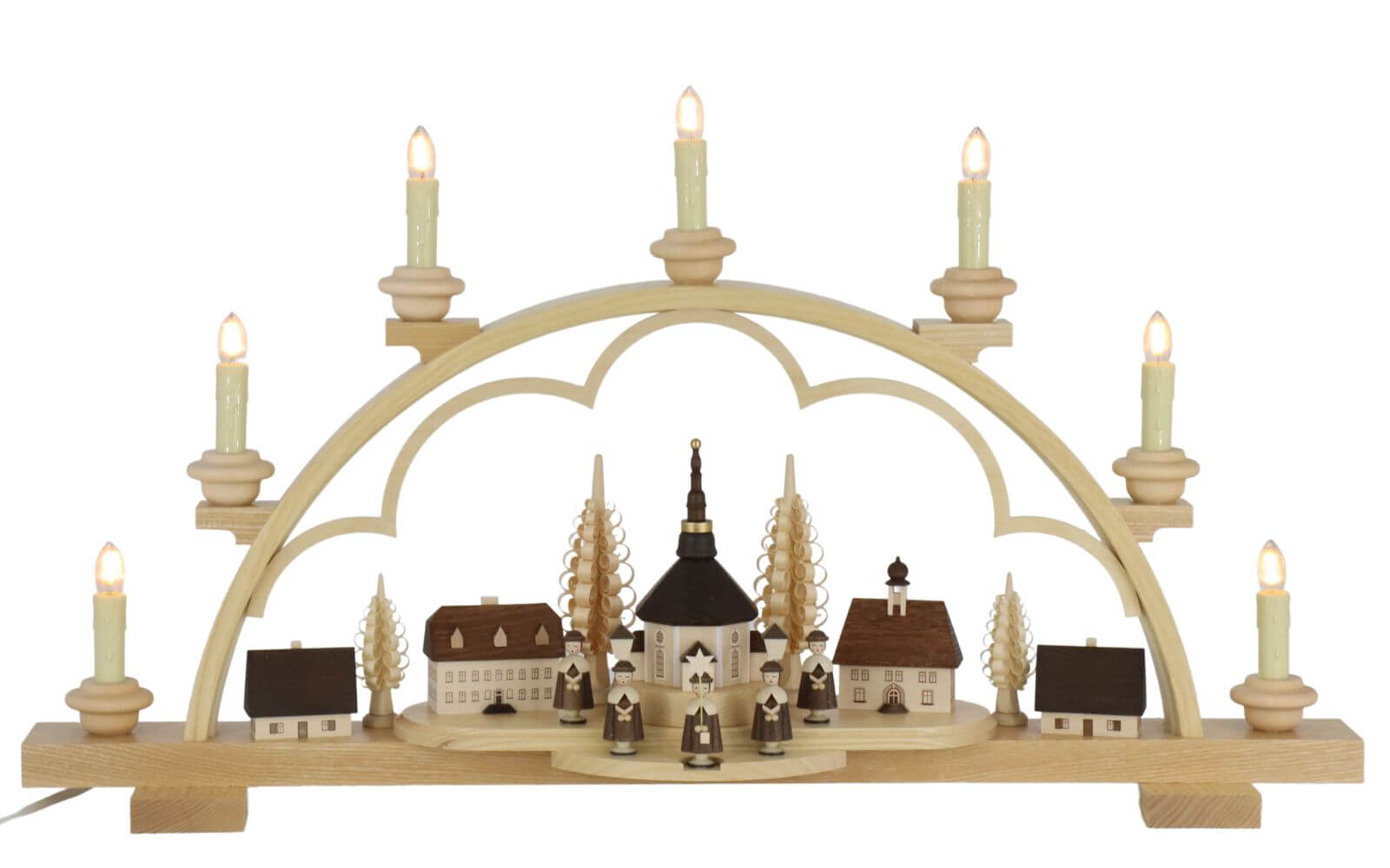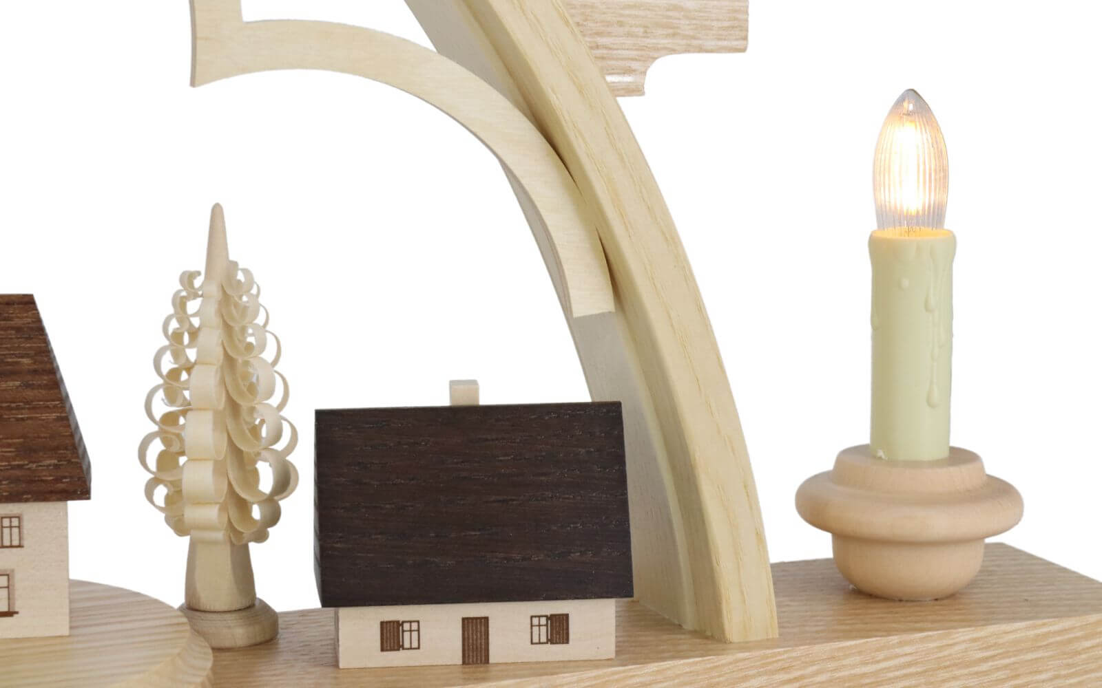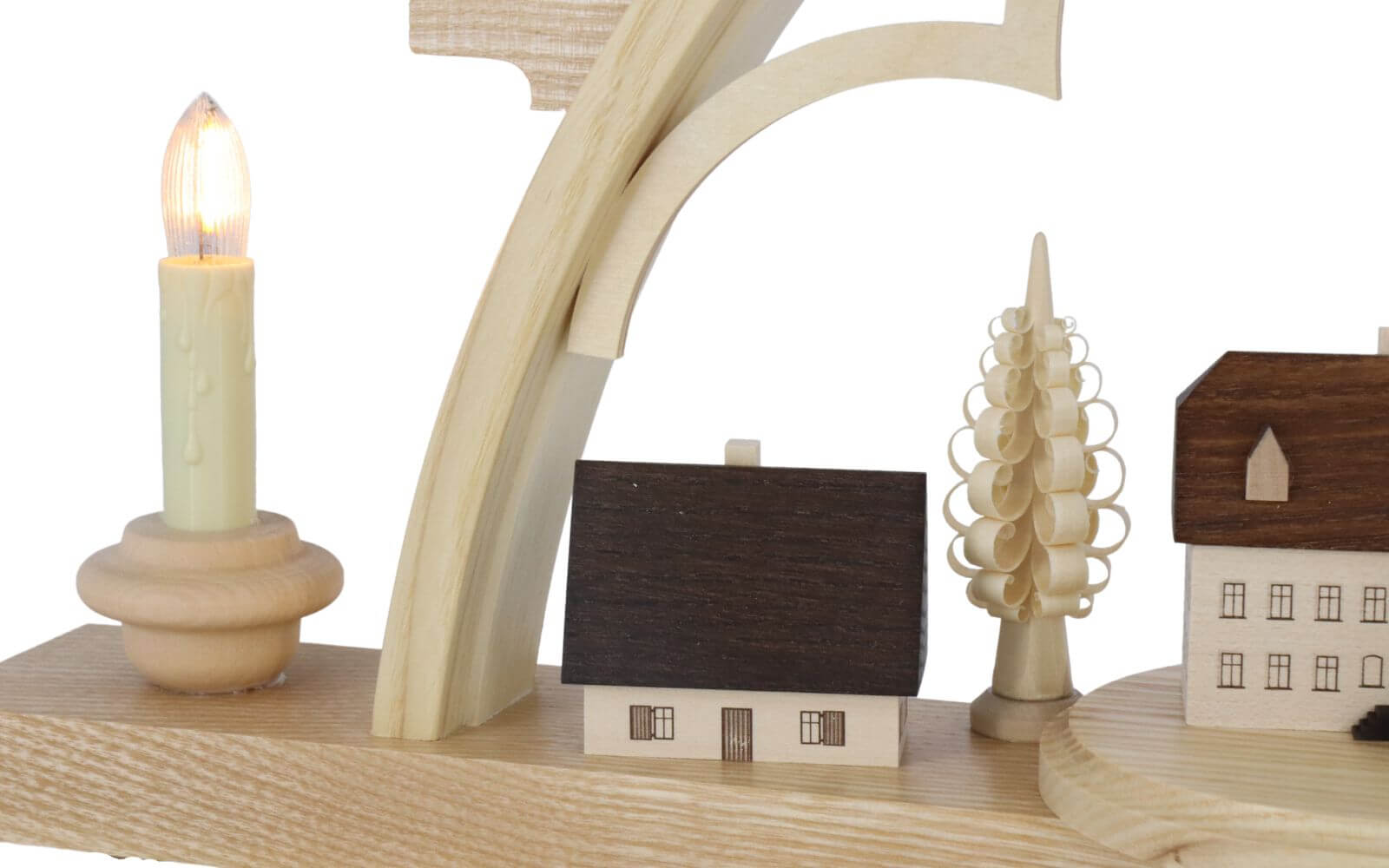 LED Candle arch Seiffen village, electrically illuminated, natural by Müller Kleinkunst from Seiffen in the Ore Mountains