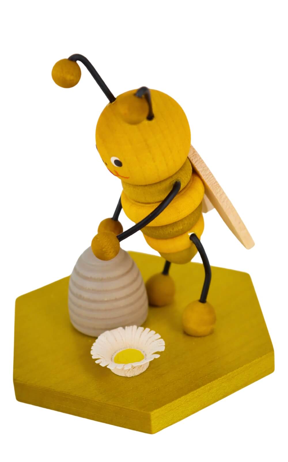 Miniature bee with beehive, 8 cm, colored by Ralf Zenker from Seiffen in the Ore Mountains