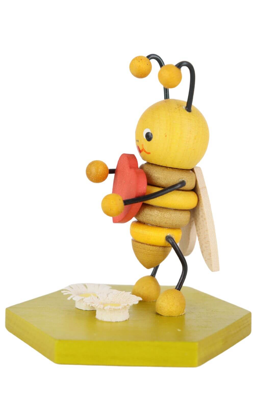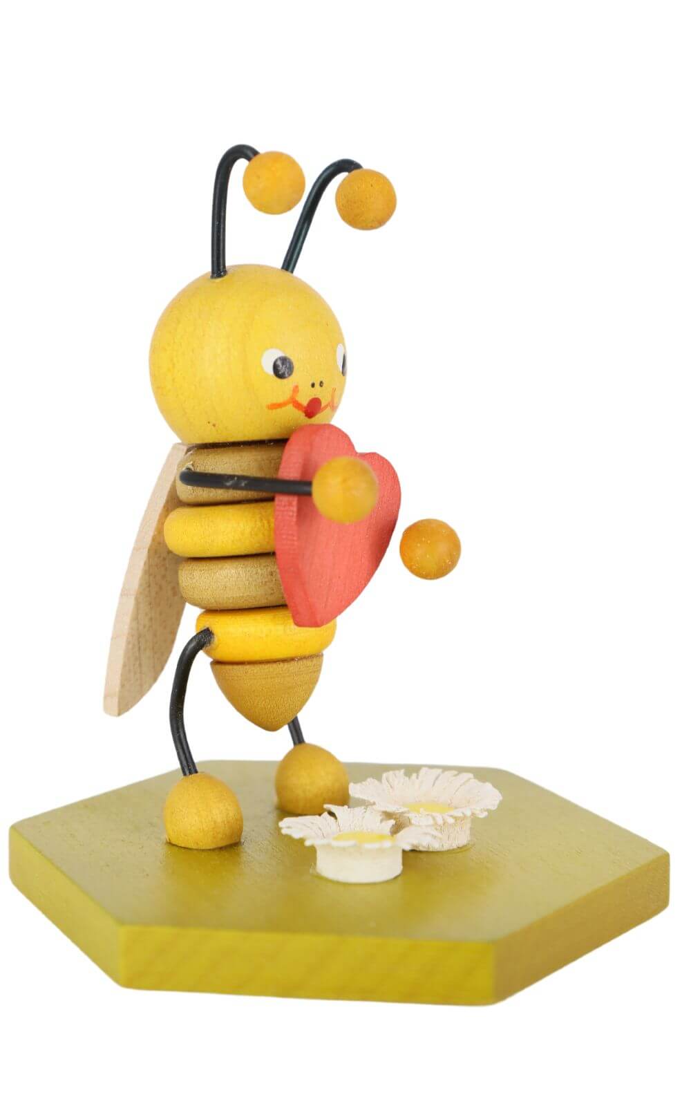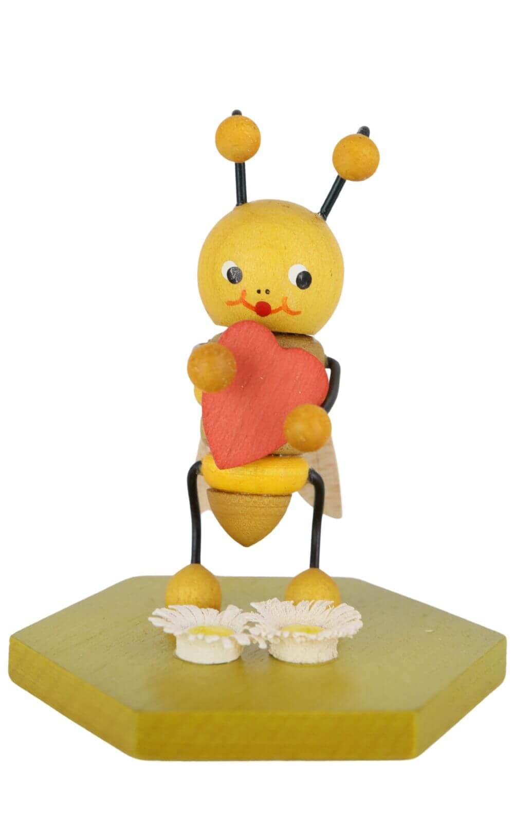Miniature bee with heart, 8 cm, colored by Ralf Zenker from Seiffen in the Ore Mountains