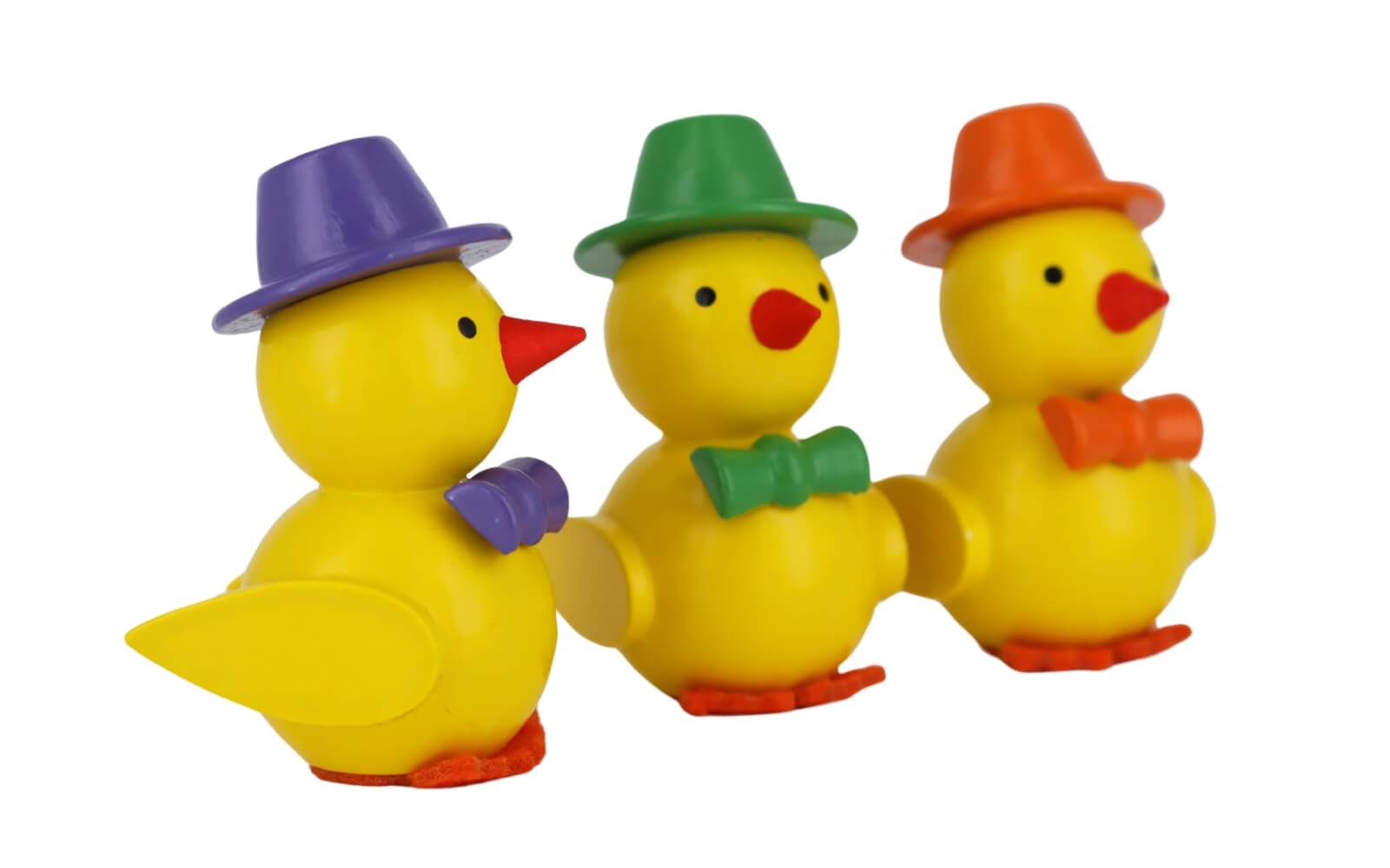 The three-piece set consists of a chick with green hat, a chick with orange hat and a chick with purple hat. This charming trio spreads pure joie de vivre and makes for a happy spring awakening with its cool and fun designs.