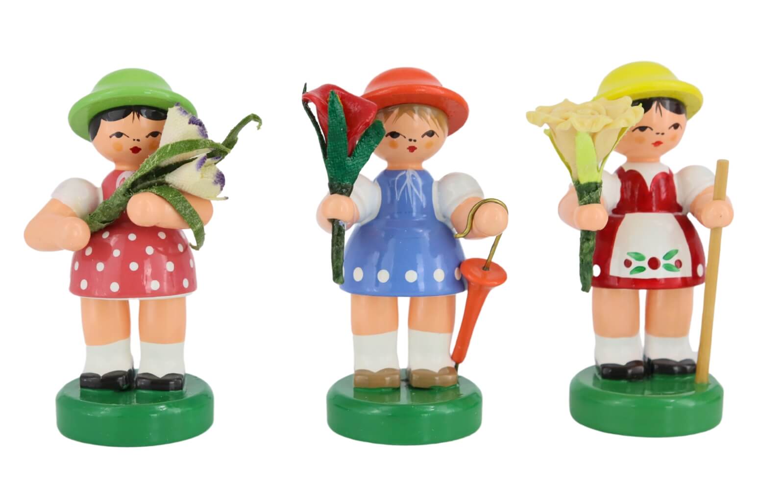 Miniature flower girls, 5 pieces, hand-painted by Figurenland Uhlig GmbH from Seiffen in the Erzgebirge