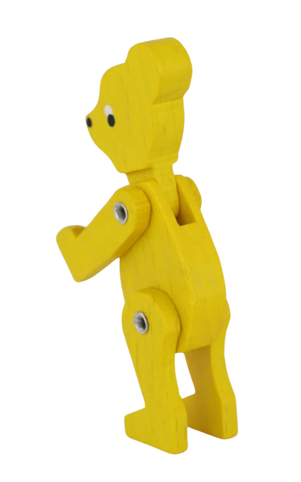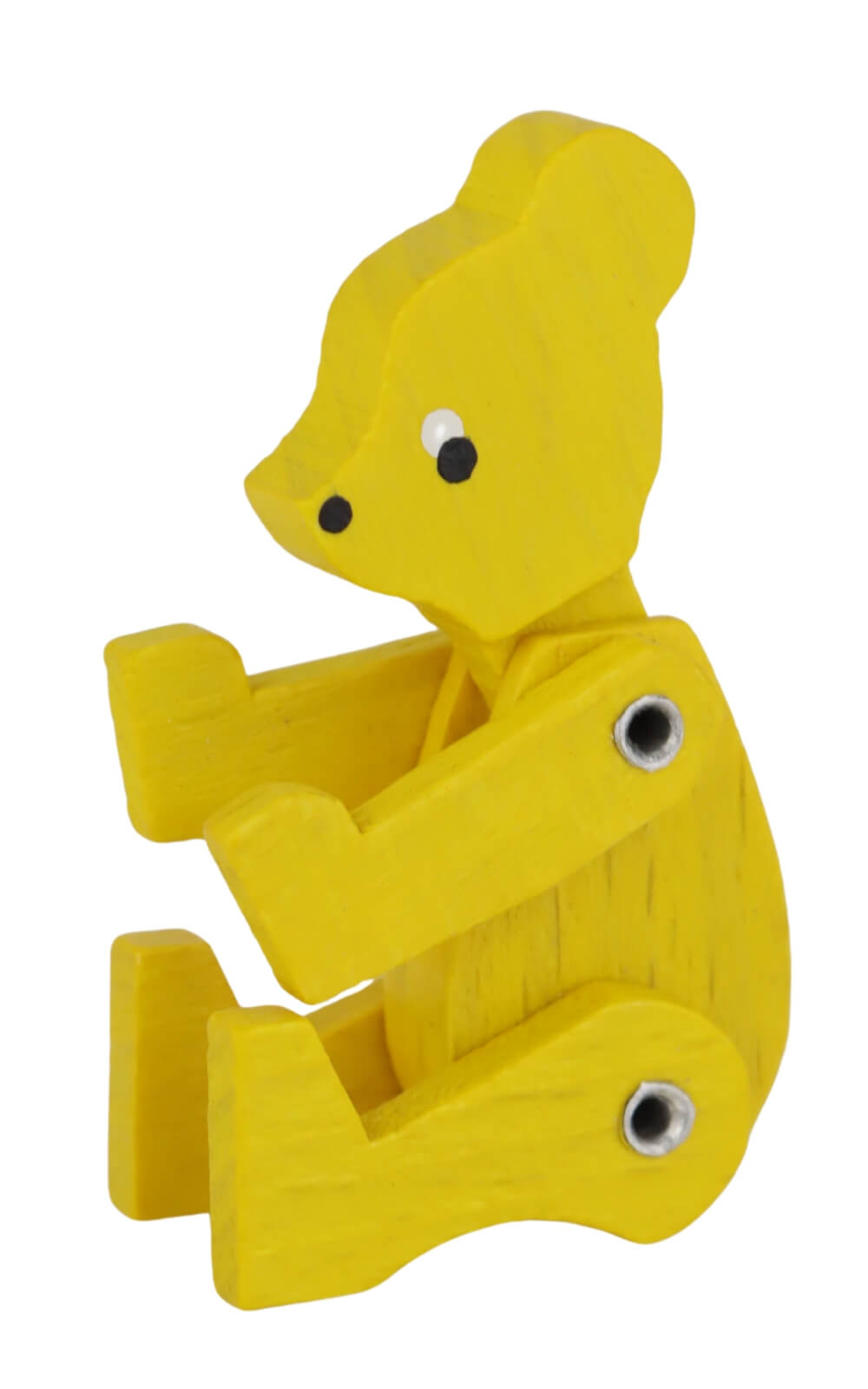 The Miniature Teddy Bear, Colored, 6 cm/2.36 in by SEIFFEN.COM is a movable wooden figure that immediately catches the eye with its cheerful character. Painted entirely in yellow, this little bear brings a sunny lightness to any decorative setting. With movable arms and legs, it can be arranged in different positions. Its friendly face, complete with finely painted eyes and a small snout, instantly creates a sense of warmth and affection.