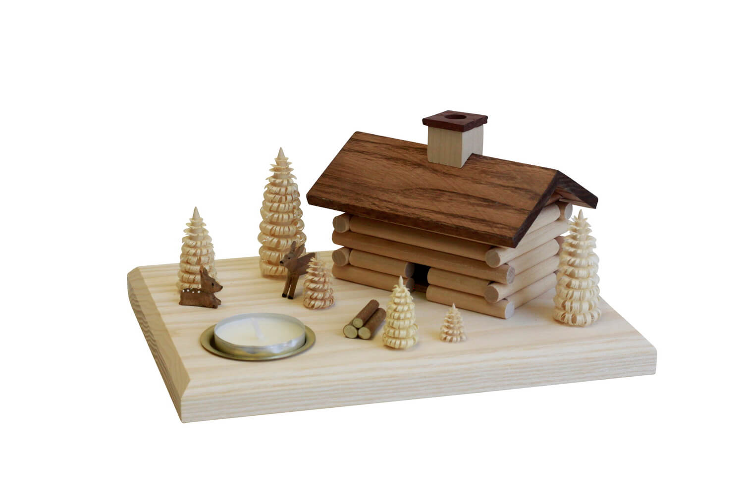 Smokehouse forest log cabin with deer and tea light, 10 cm by Christian Kern