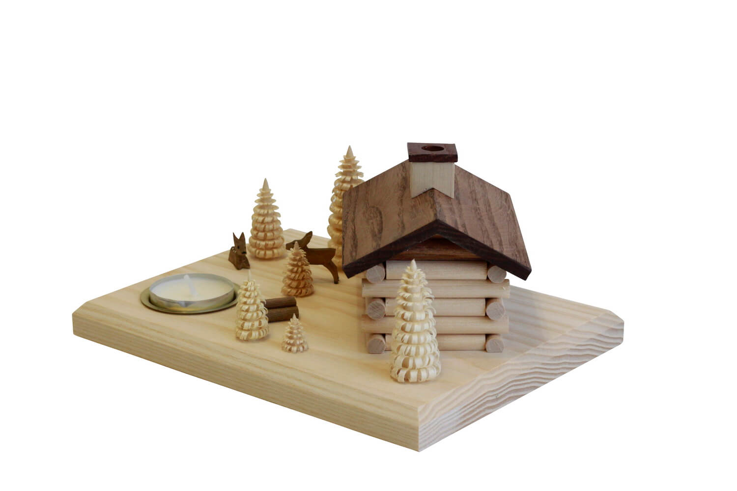 Smokehouse forest block hut with deer and tea light from Christian Kern from Deutschneudorf in the Ore Mountains