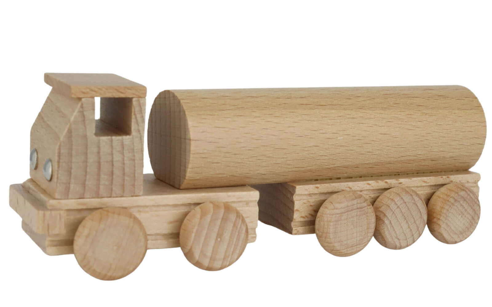 The natural wooden tanker car by Ebert GmbH in the Erzgebirge is therefore not only a toy, but also a valuable educational aid and a piece of German craftsmanship, that makes children's hearts beat faster.